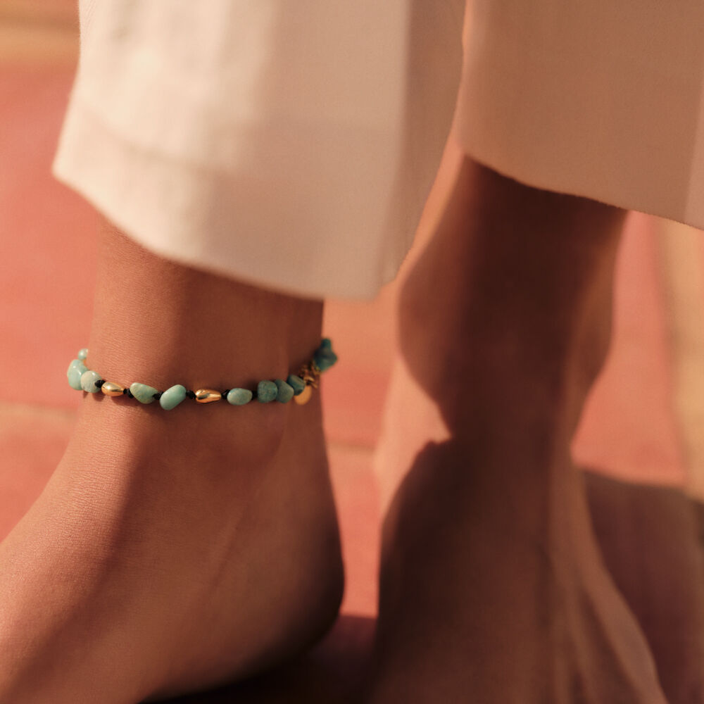 Steel anklet with natural stones.A fresh and summery piece, designed to add a touch of color to all your outfits.