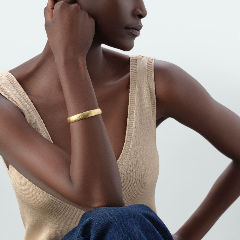 Textured bangle from our CHARLOT collection, designed in Paris, made from 750/1000th - 18-carat gold-plated brass with a matte finish.