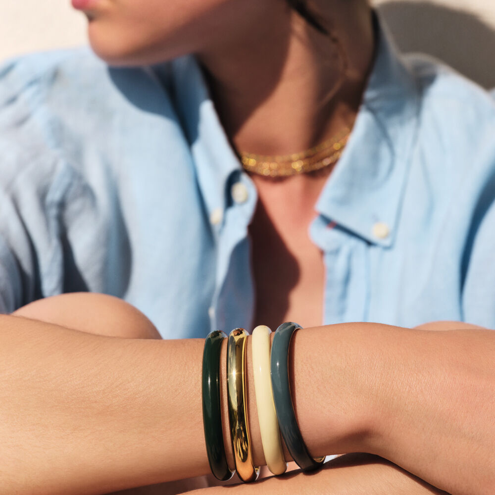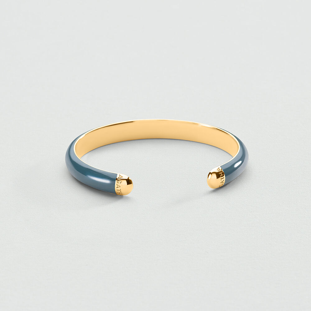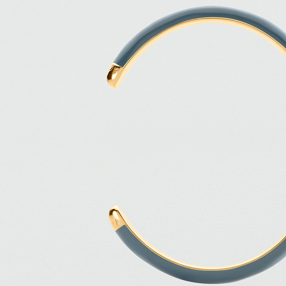 A stainless steel bangle with a sleek, minimalist silhouette.