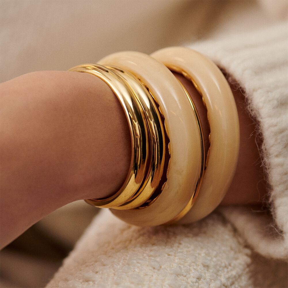 Open bangle, in fine gold plated brass, round wire in metal or enamelled..