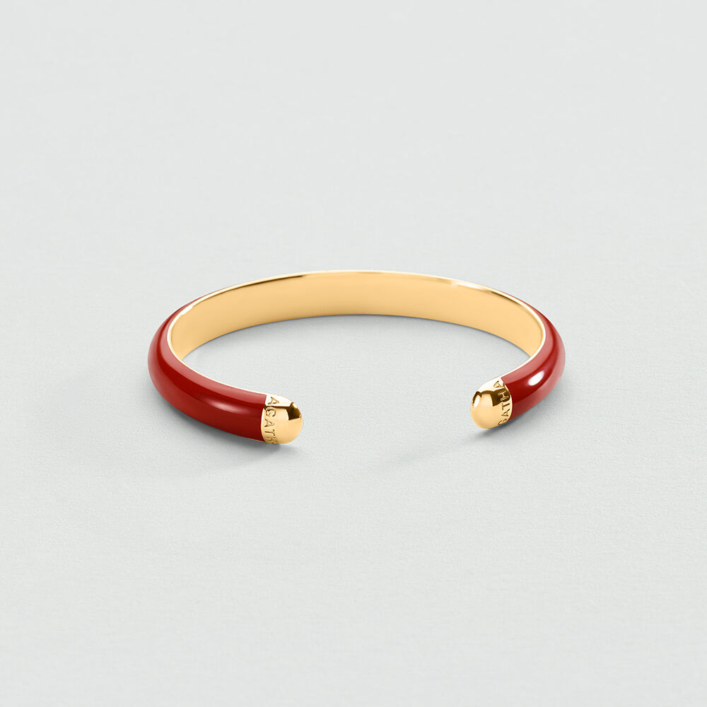 A stainless steel bangle with a sleek, minimalist silhouette.