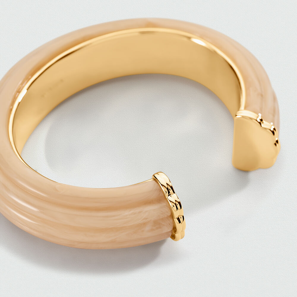Bracelet from our MADELEINE collection, designed in Paris, made from 750/1000th - 18-carat gold-plated brass and striped resin. It is available in ivory, brown, khaki, or gold. This timeless collection highlights beautiful volumes and plays with trendy seasonal colors. The marbled appearance means that there may be slight variations in color from one model to another.