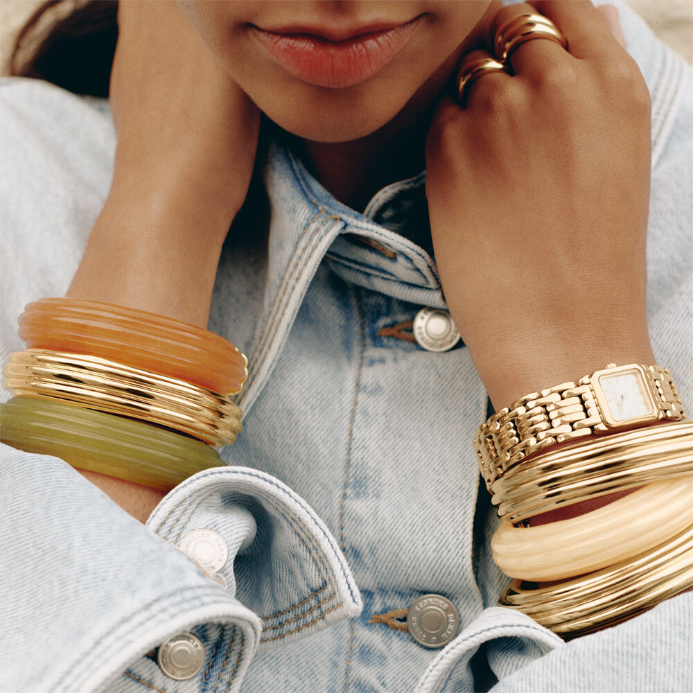 Bracelet from our MADELEINE collection, designed in Paris, made from 750/1000th - 18-carat gold-plated brass and striped resin. It is available in ivory, brown, khaki, or gold. This timeless collection highlights beautiful volumes and plays with trendy seasonal colors. The marbled appearance means that there may be slight variations in color from one model to another.