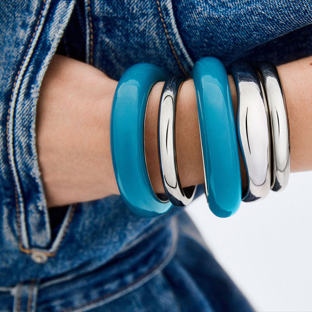 Bracelet from our PALAIS ROYAL collection, designed in Paris, made from rhodium-plated silver-plated brass and resin.