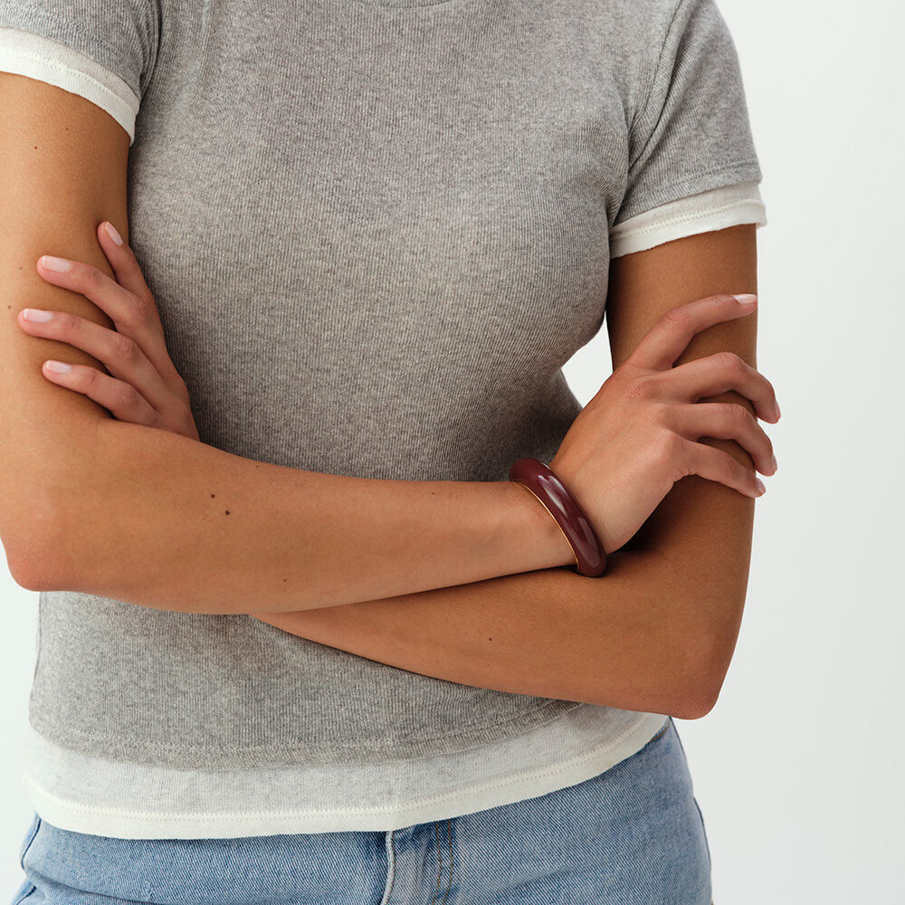 This bangle from our PALAIS ROYAL collection, designed in Paris, is made from brass gilded with 750/1000th – 18-carat gold and acetate.It is available in Bordeaux, Ivory, or Leopard colors.An iconic Agatha product, this bangle adds a touch of color to your outfits.