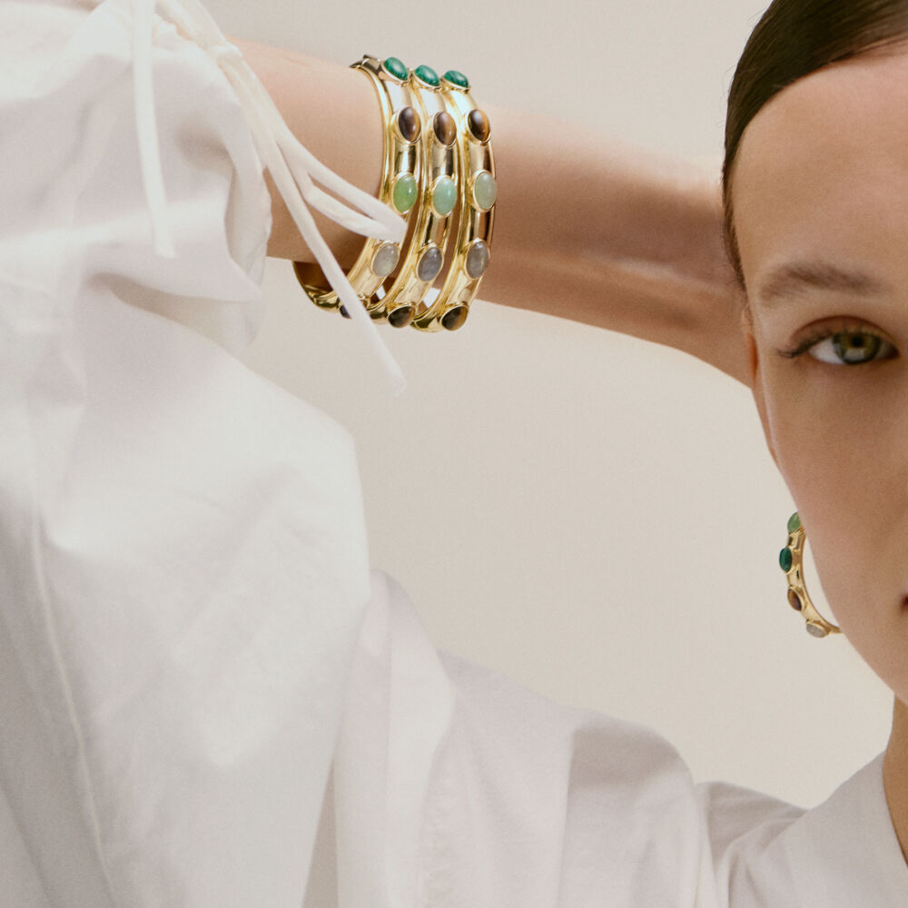 Articulated bangle, in golden brass, oval setted stones.