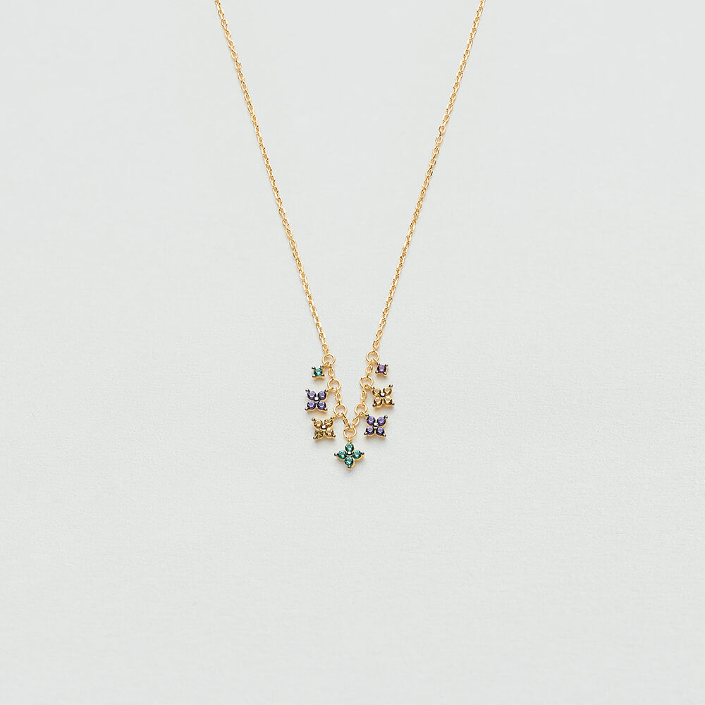 Short necklace in 925/1000 silver plated with 750/1000 gold, with cubic zirconia flowers as pendants.