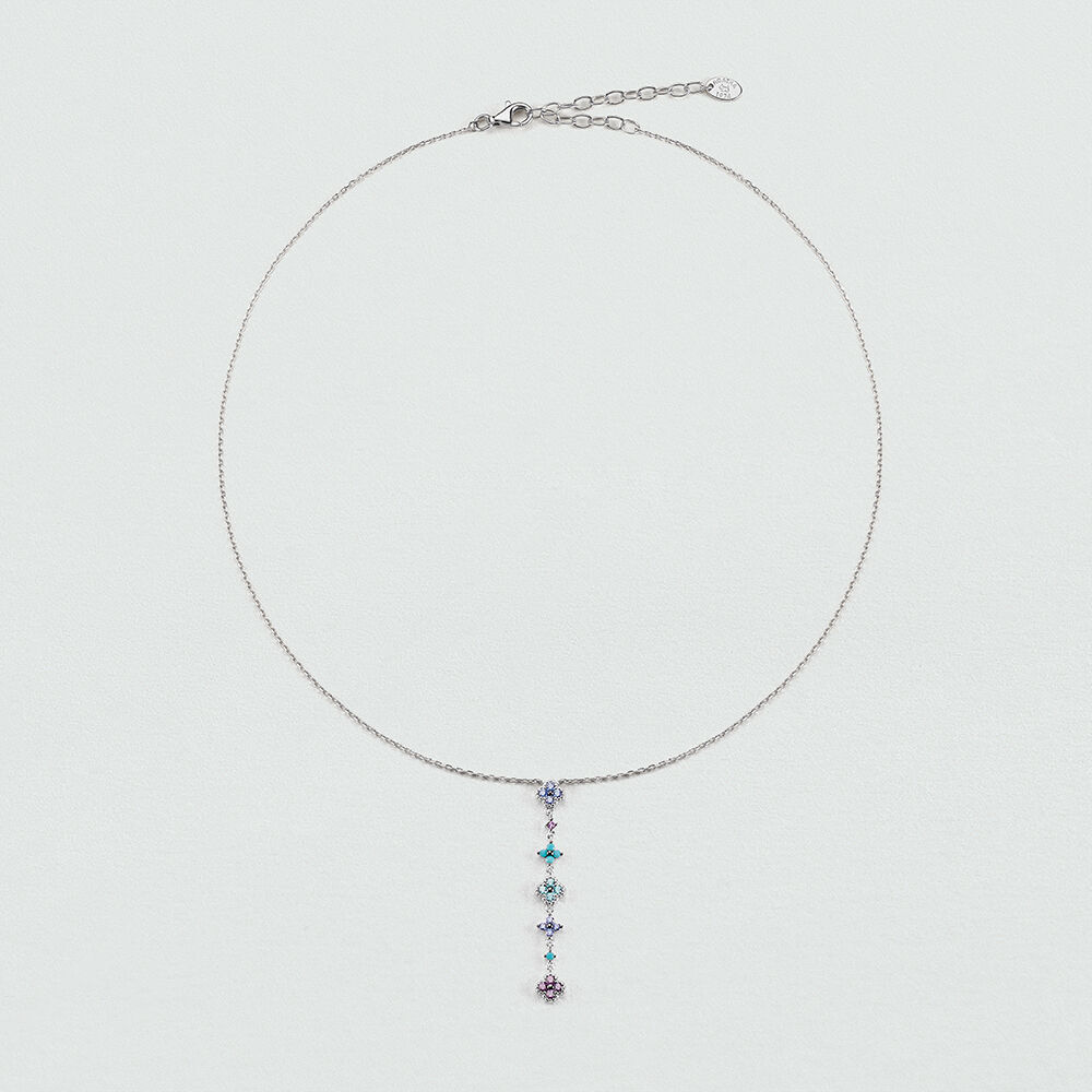 Necklace in sterling silver with paved flowers.. This piece of jewelry measures 390 mm and has an extender of 50 mm