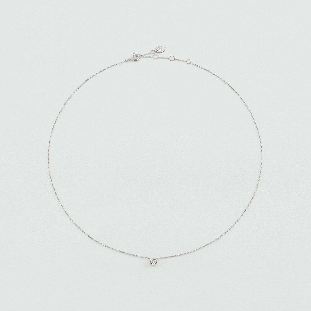Short necklace with an enclosed cubic zirconia, on a thin chain, in sterling silver.. This piece of jewelry measures 375 mm and has an extender of 50 mm