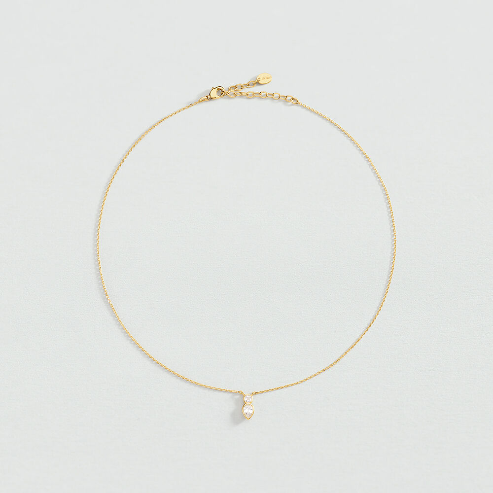 This necklace from our CANDY collection, designed in Paris, is made from 750/1000 gold-plated brass and adorned with zirconium oxides.With its small pendant adorned with oxides, this necklace is modern and discreet, for a look that is all about finesse. It can be paired with other jewellery from our permanent CANDY collection, or with our VICTOIRE rings. This piece of jewelry is 375mm long and comes with a 50mm extender