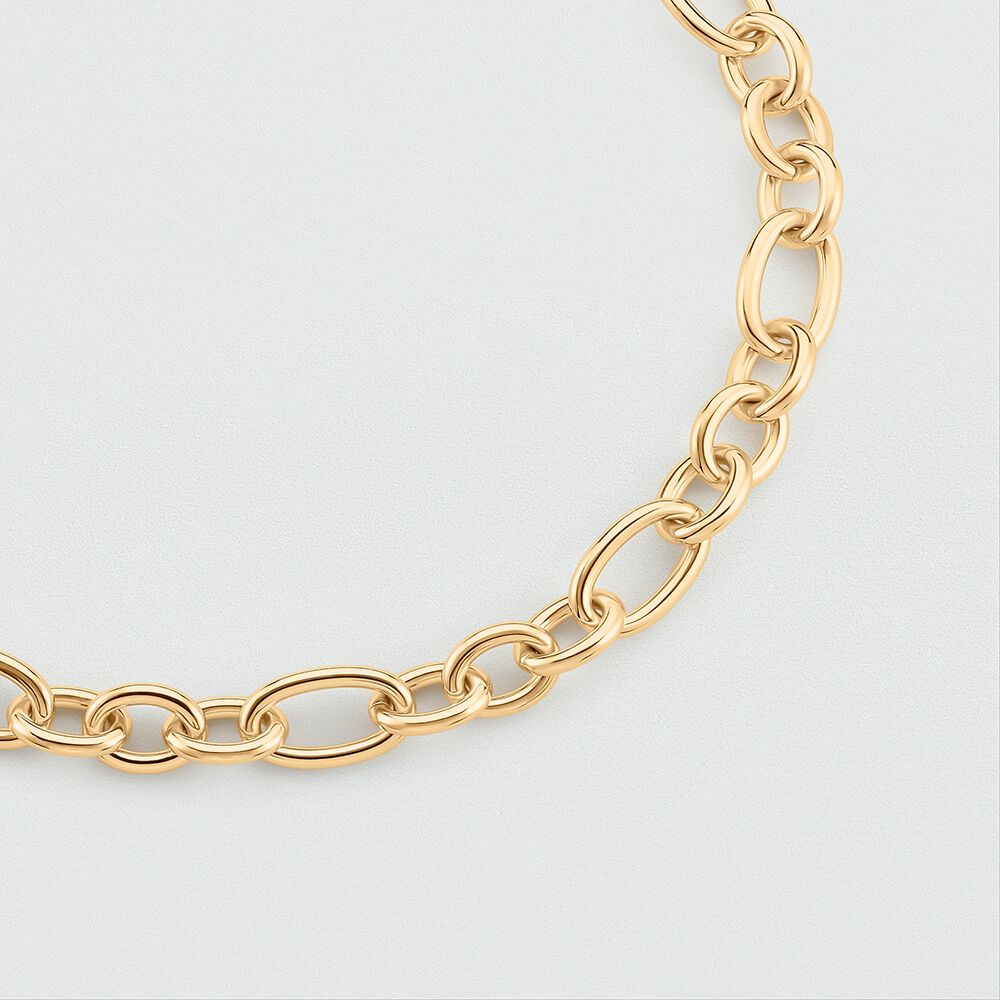 SHort necklace, in fine gold plated brass, thick chain with extension. This piece of jewelry measures 420 mm with an additional X 50 mm extension