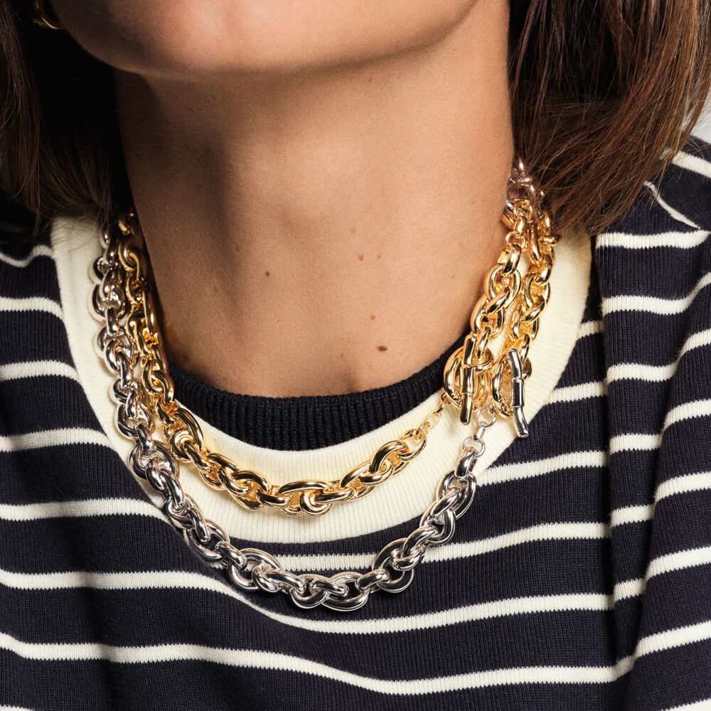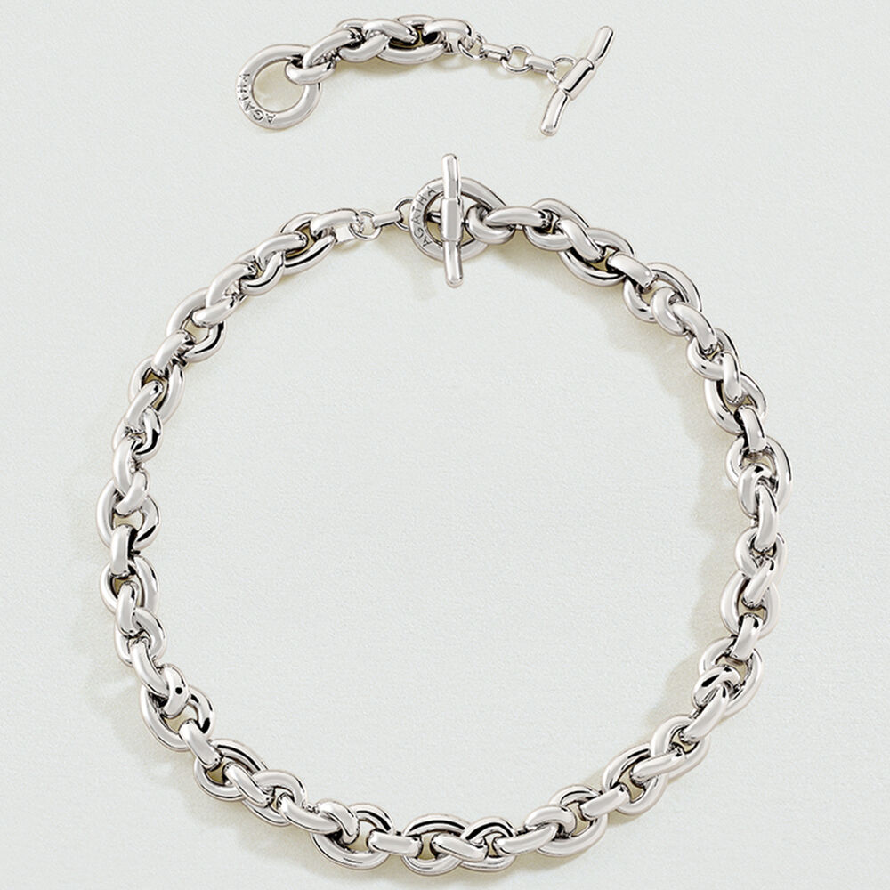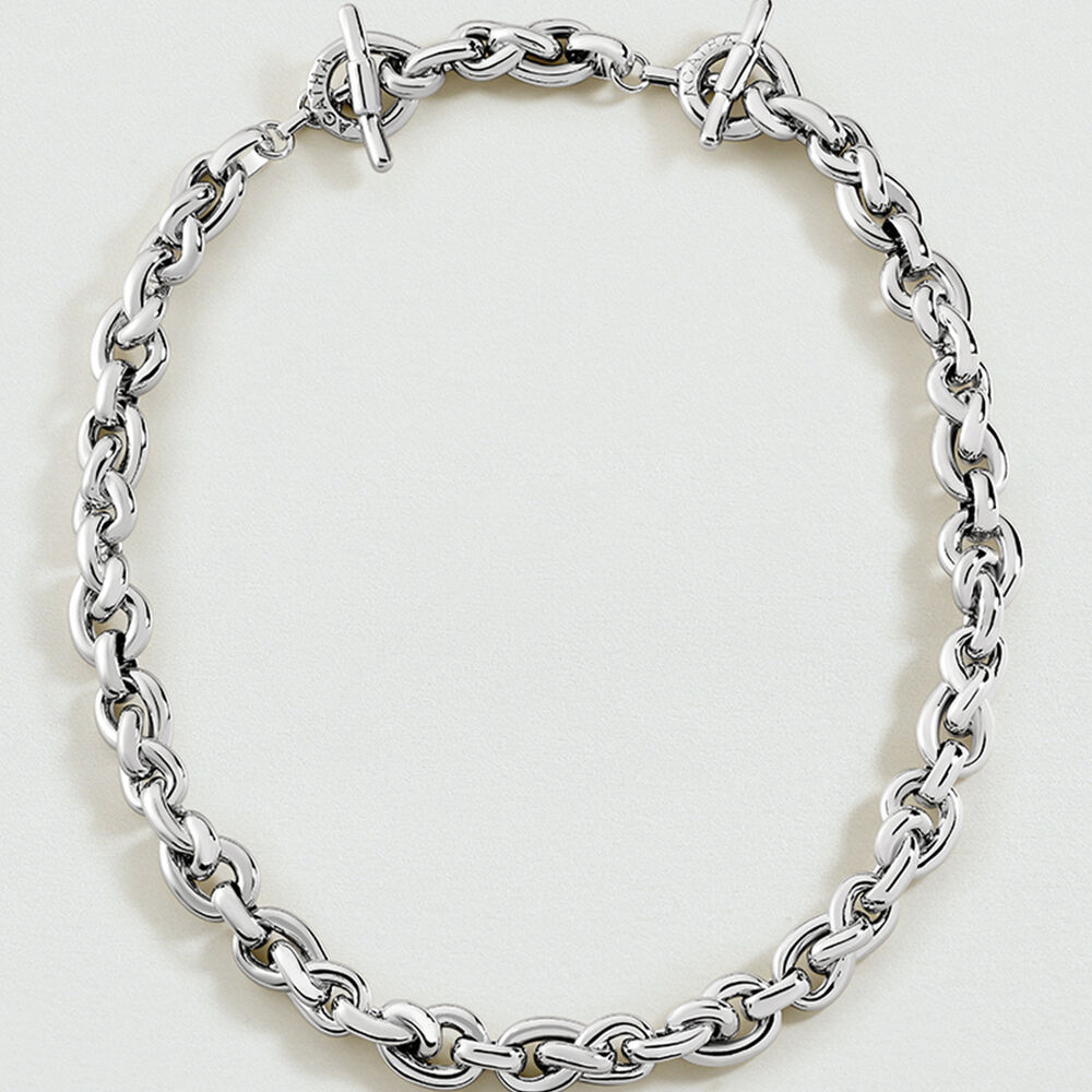 Knot link necklace in rhodium-plated brass..