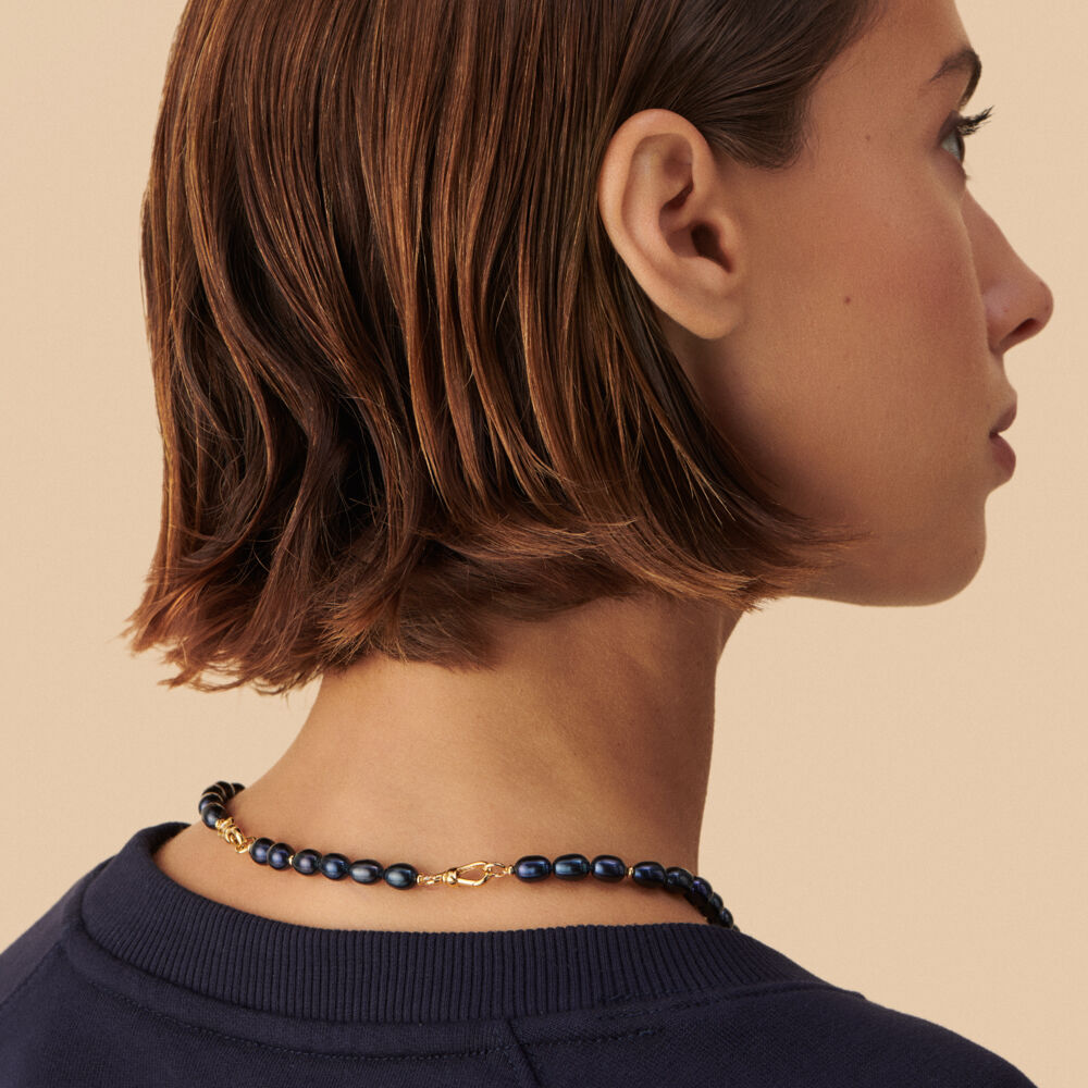 Mid-long necklace in full natural pearls and 750/1000 gold plated brass. .