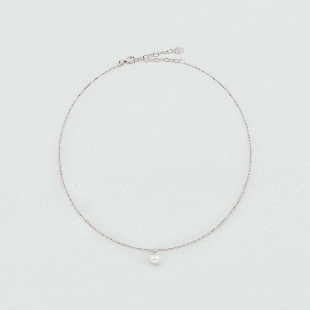 Necklace in sterling silver with a pearl pendant. This piece of jewelry is 375mm long and comes with a 50mm extender