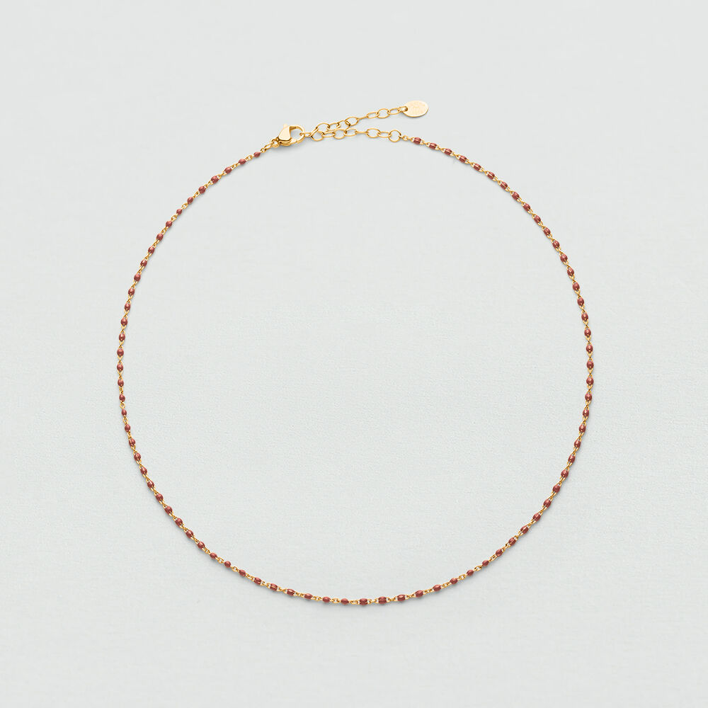 This necklace from our SMARTY collection, designed in Paris, is made of stainless steel gilded with fine gold and adorned with small colored enamel beads. It is available in silver/gold, turquoise, green, burgundy, black, coral, blue or white. A refined piece that adds a touch of elegance to all your outfits. This piece of jewelry measures 375 mm and has an extender of 50 mm
