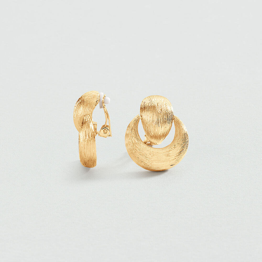 Textured double clip-on earrings from our CHARLOT collection, designed in Paris, made from 750/1000th - 18-carat gold-plated brass with a matte finish. Earrings for non-pierced ears with clip-on fastening.