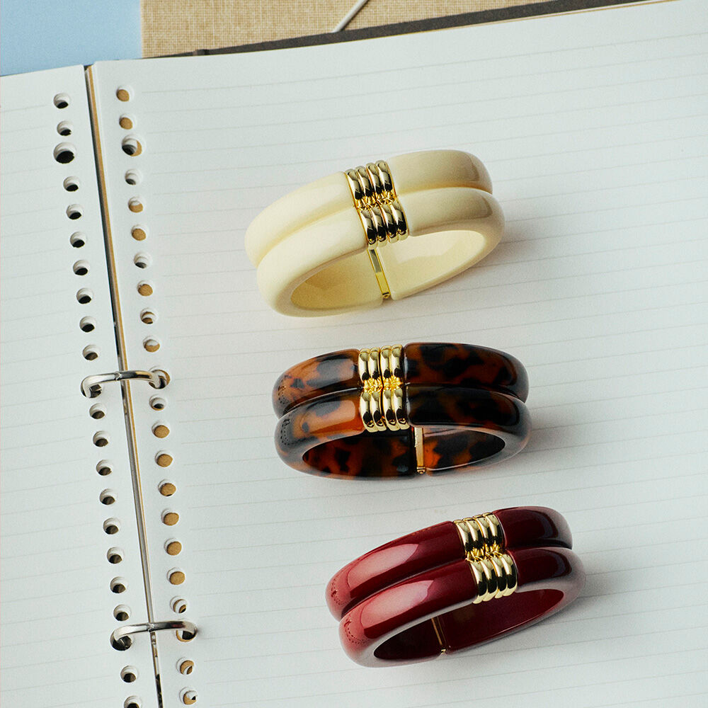 This cuff bracelet from our PALAIS ROYAL collection, designed in Paris, is made from 750/1000th gold-plated brass (18 carats) and acetate. It is hinged for easy slip-on wear.It is available in Bordeaux and Leopard colors.An iconic Agatha product, this cuff adds a touch of color to your outfits.