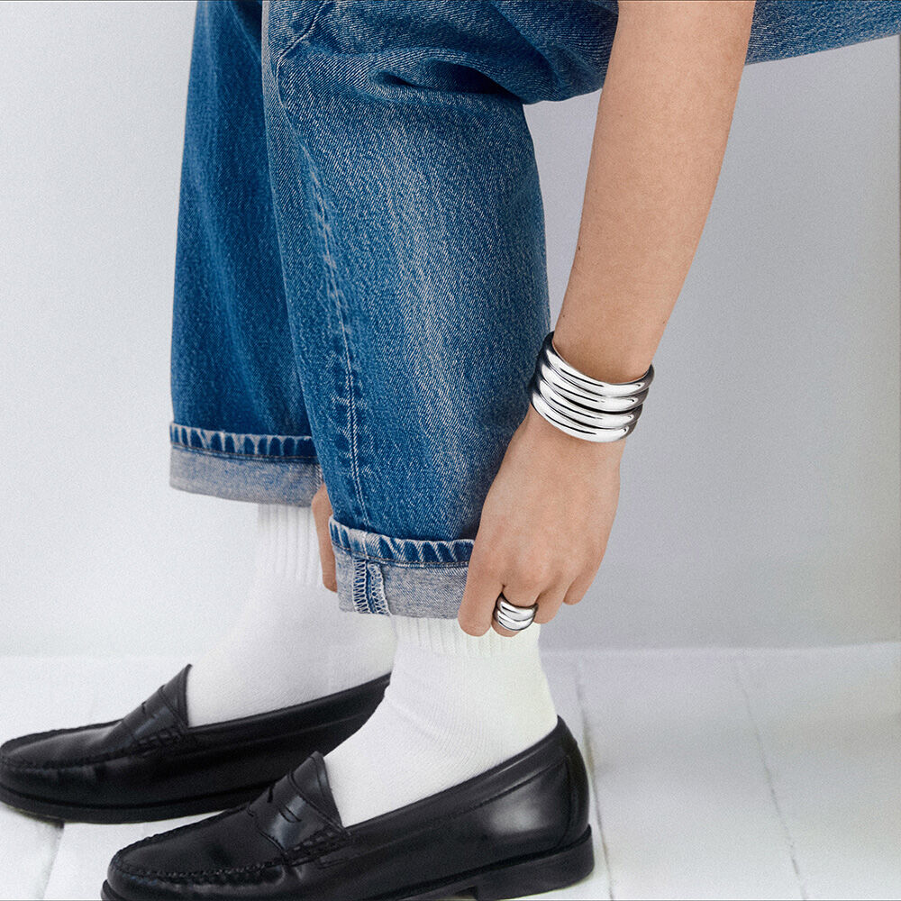 This double bracelet from our RUE DE SEINE collection, designed in Paris, is crafted from 925 sterling silver.It combines generous volumes and contrasting details for a refined elegance with a bold character.