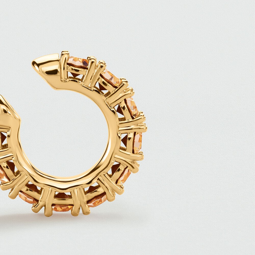 This earcuff from our LUTETIA collection, designed in Paris, is made from brass gilded with 750/1000th - 18-carat gold and adorned with glass gems.Inspired by Art Deco, it is embellished with glass gems enhanced by a delicate peachy pink hue.