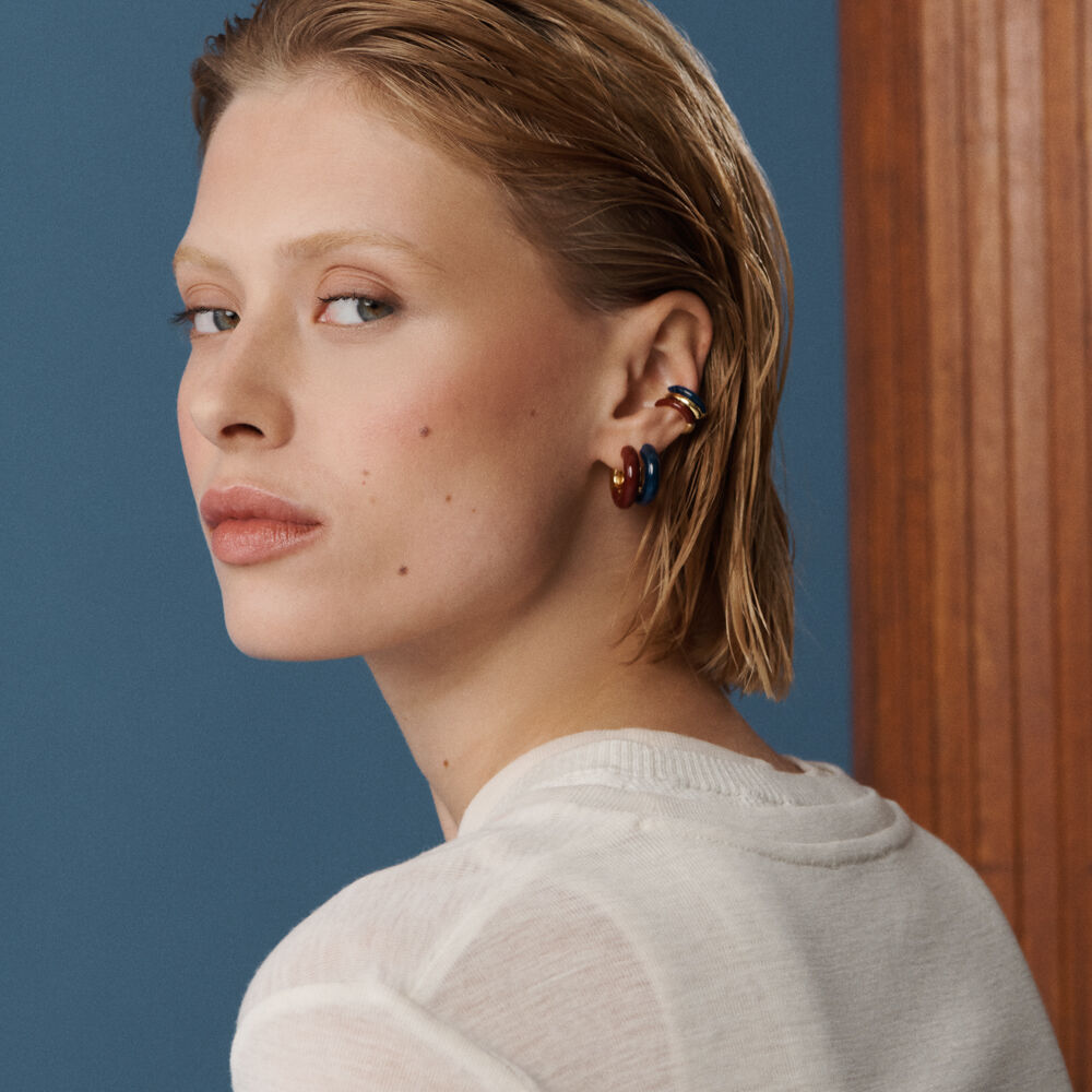 Fake piercing, in golden sterling silver, thick enamelled wire. Sold by unit.