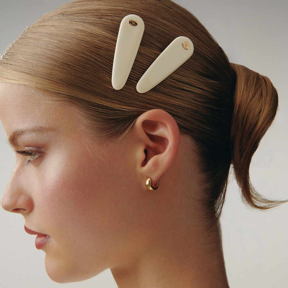 This hair clip from our hair accessory collection, designed in Paris, is made from brass gilded with 750/1000th gold – 18 carats – and enamel.It's the perfect accessory to enhance your hair!