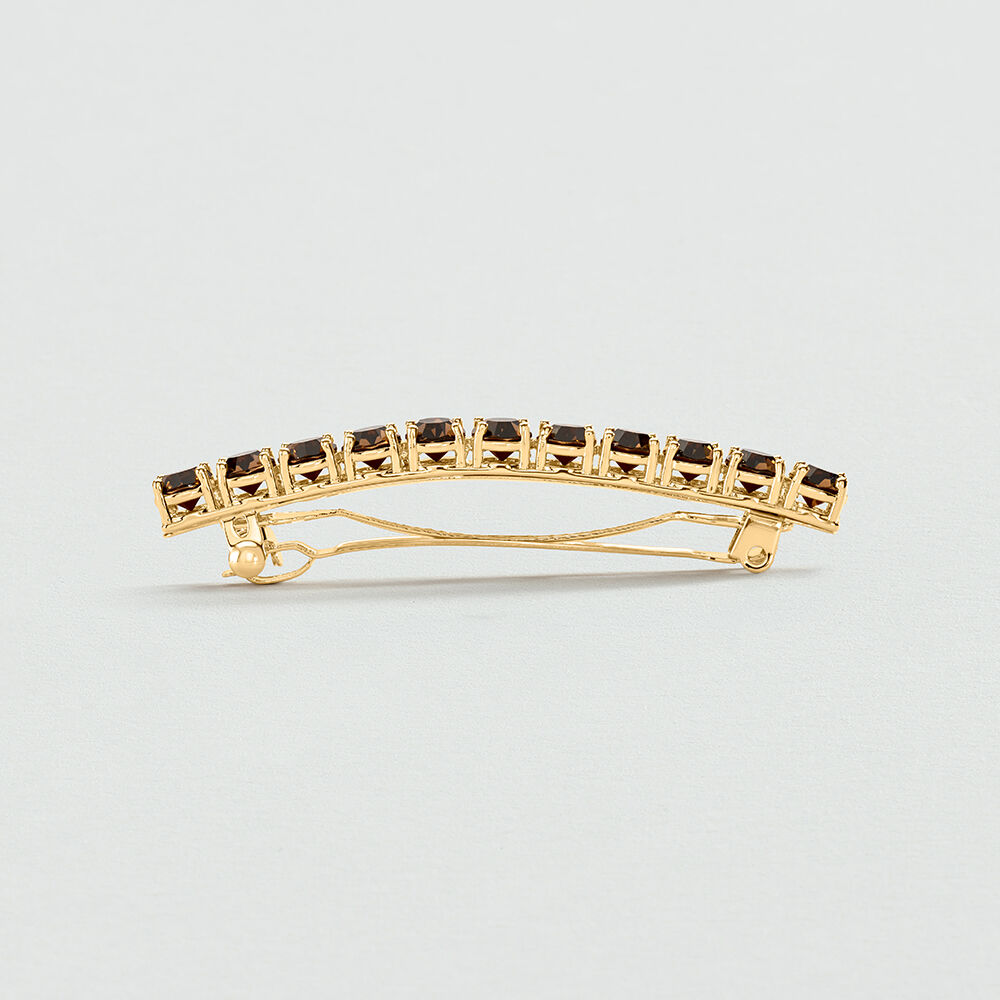 This hair clip from our LUTETIA collection, designed in Paris, is made of brass gilded with 750/1000th - 18-carat gold and adorned with glass gems.Inspired by the Art Deco style, it stands out with its sumptuous large gems in smoky shades.