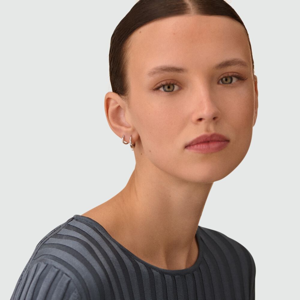 Hoop earring, in rhodium plated sterling silver, one fresh wather pearl setted on a thick wire. Sold by unit.