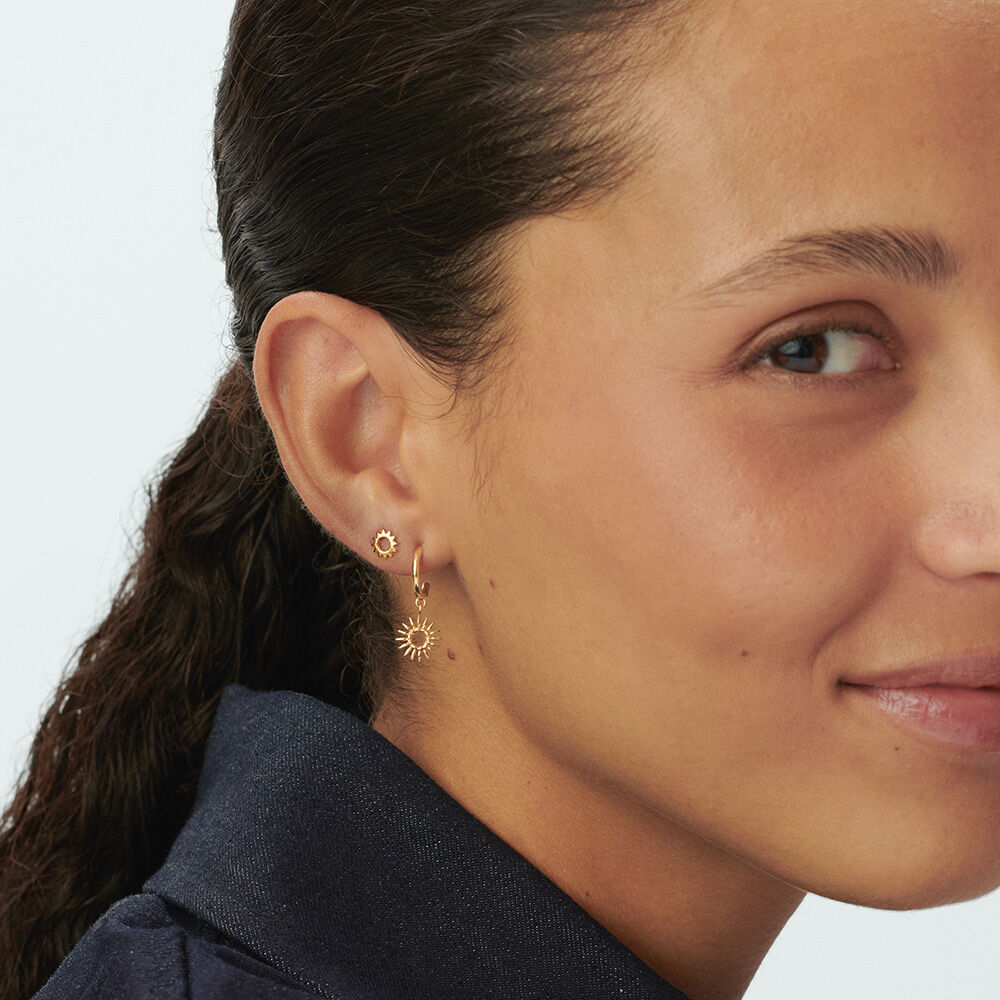 Unit hoop in sterling silver with fine gold plating, representing a radiant sun. .