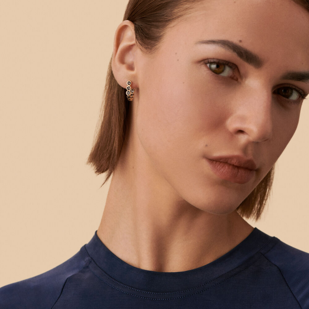 Little oval hoops, in golden brass, range of close setted cubic zirconia.