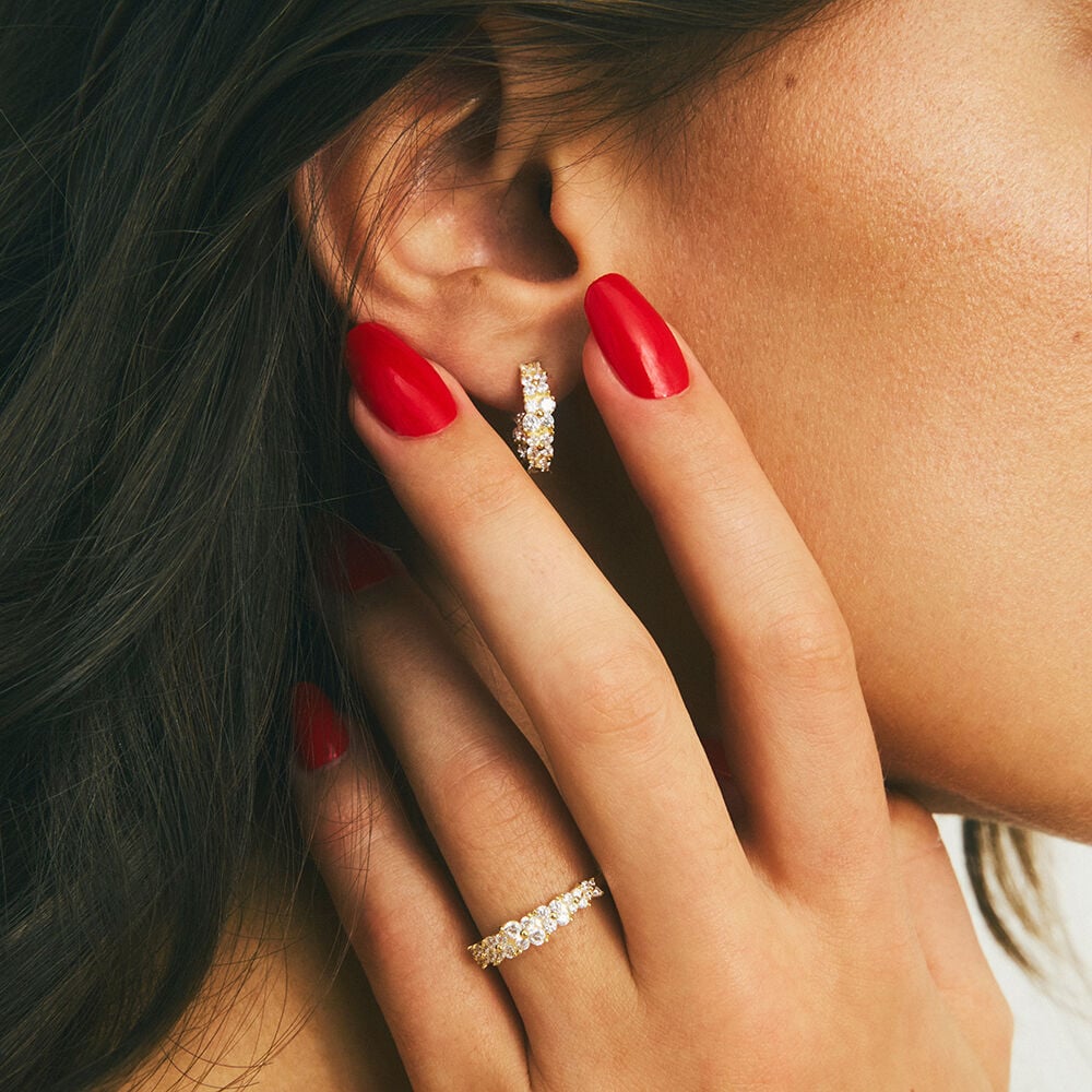 These hoop earrings from our BELOVED collection, designed in Paris, are crafted from gold-plated 925 sterling silver and adorned with zirconium oxides.They reinterpret our iconic BELOVED collection, enhanced by a delicate river of oxides that adds a touch of timeless elegance.