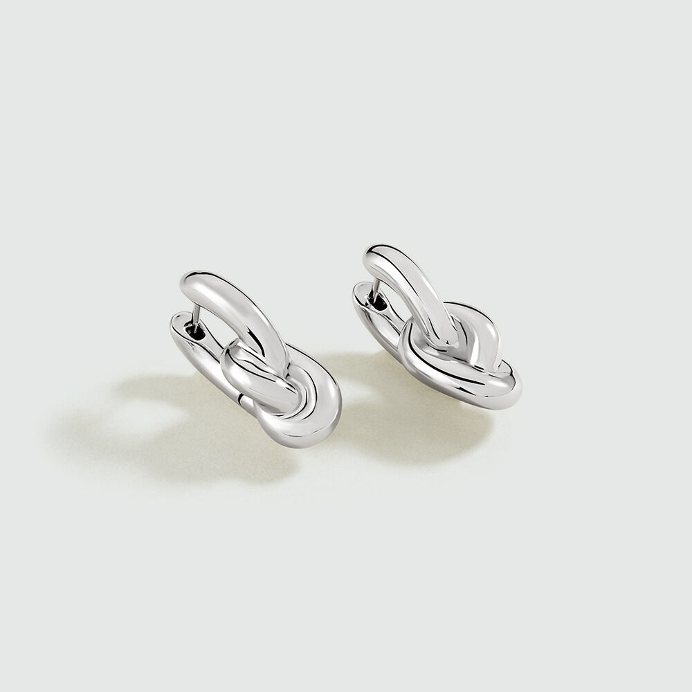 Hoop earrings in rhodium-plated brass with knot pendants.