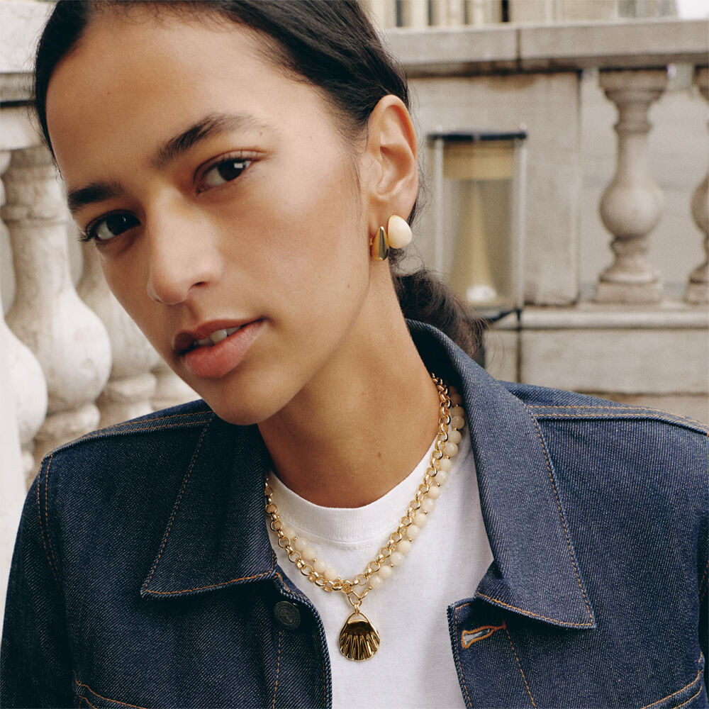 Drop earrings from our MADELEINE collection, designed in Paris, made from 750/1000th - 18-carat gold-plated brass and colored resin. They are available in ivory, khaki, or brown. This timeless collection plays with very trendy seasonal colors. The marbled effect means that there may be slight variations in color from one model to another. These hoop earrings are 12mm in diameter.