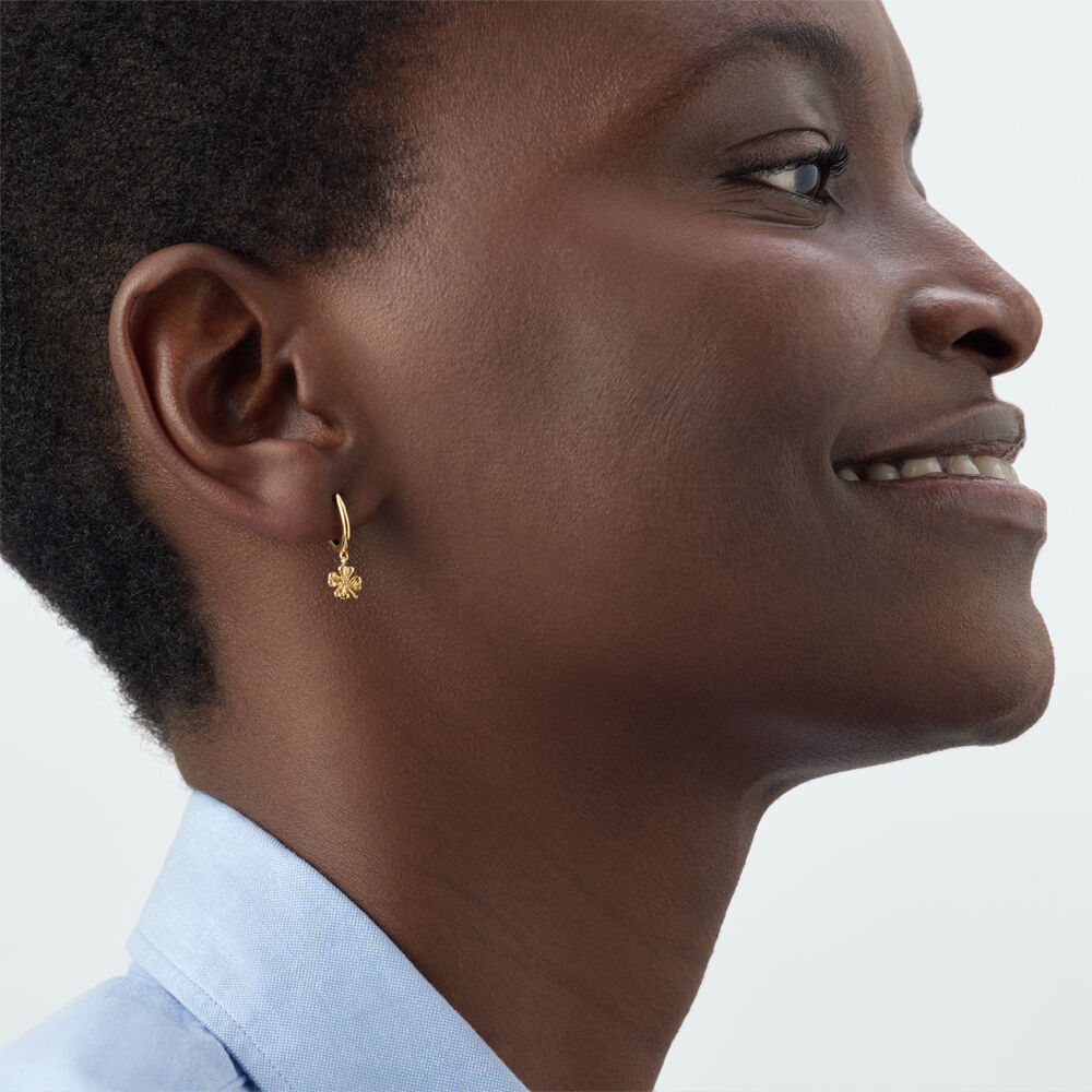 This clover hoop earring from our MIX & MATCH collection is made from 925 silver plated with 750/1000th - 18 carat gold.Sold individually, so you can mix and match them.