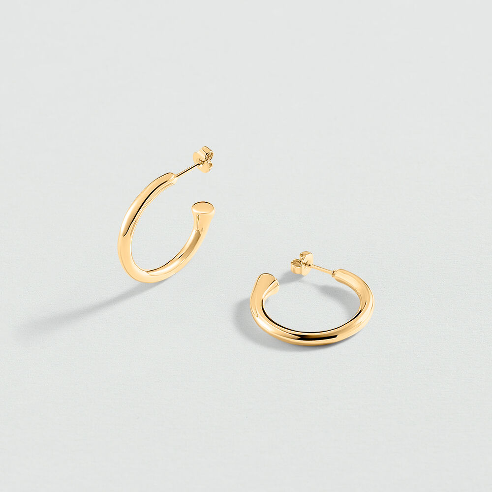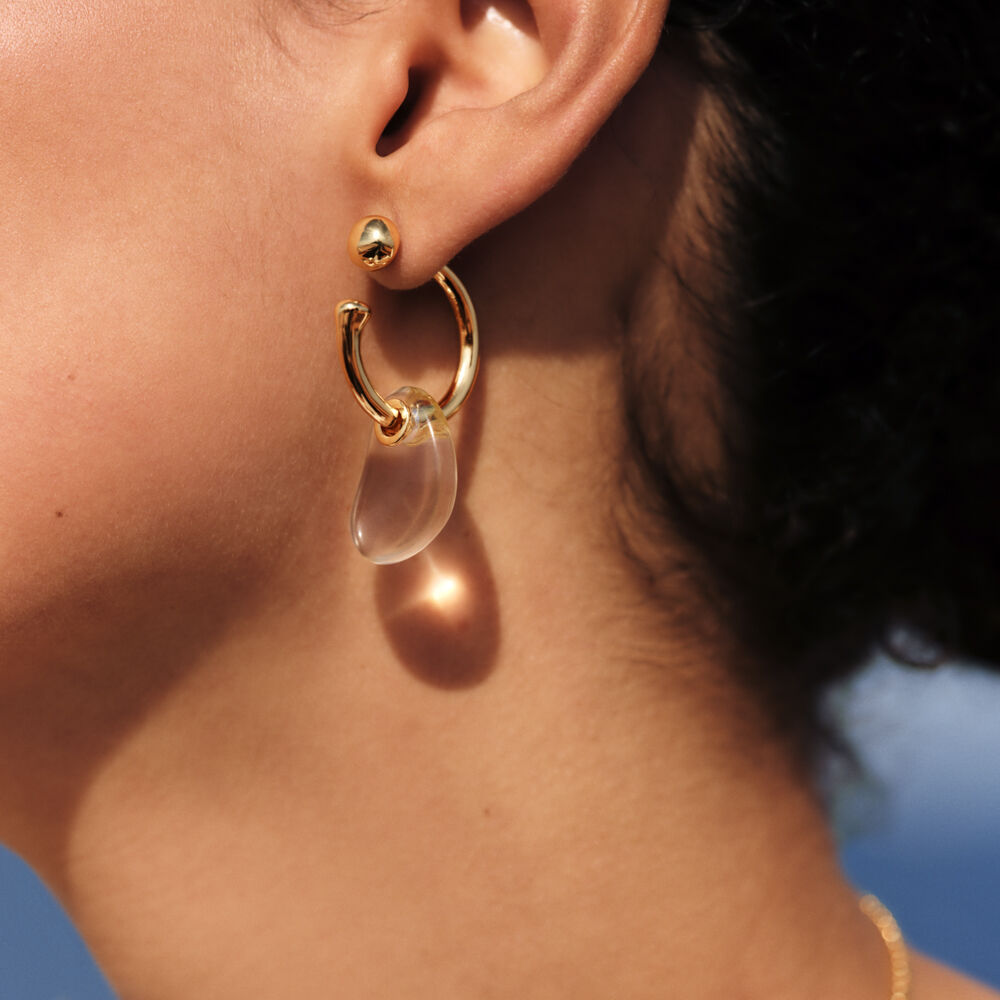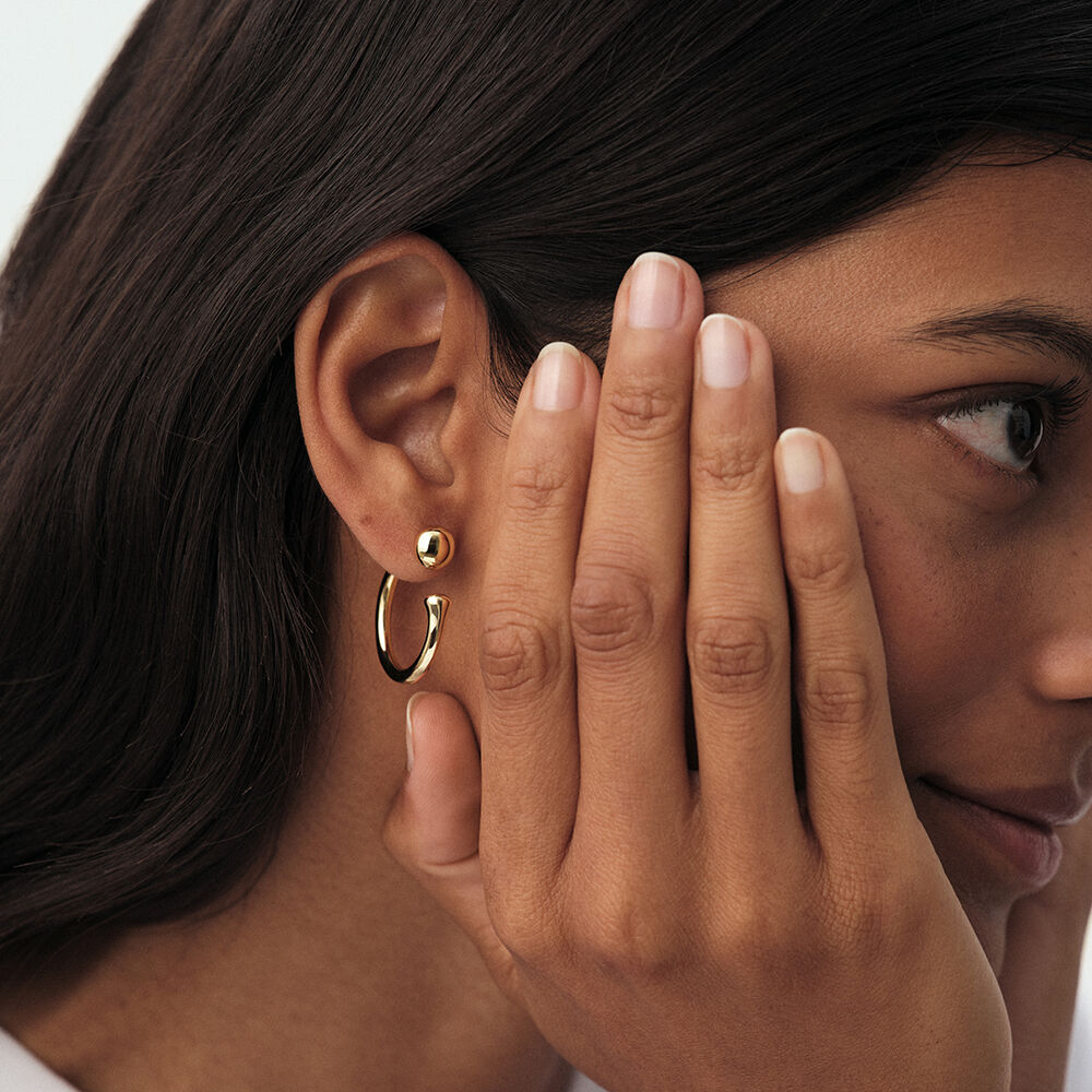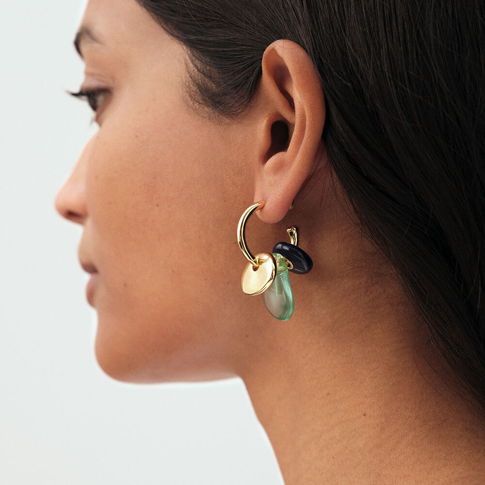Organic gold-plated brass hoop earrings. Modular to suit your style: the bead can be worn at the front or the back..