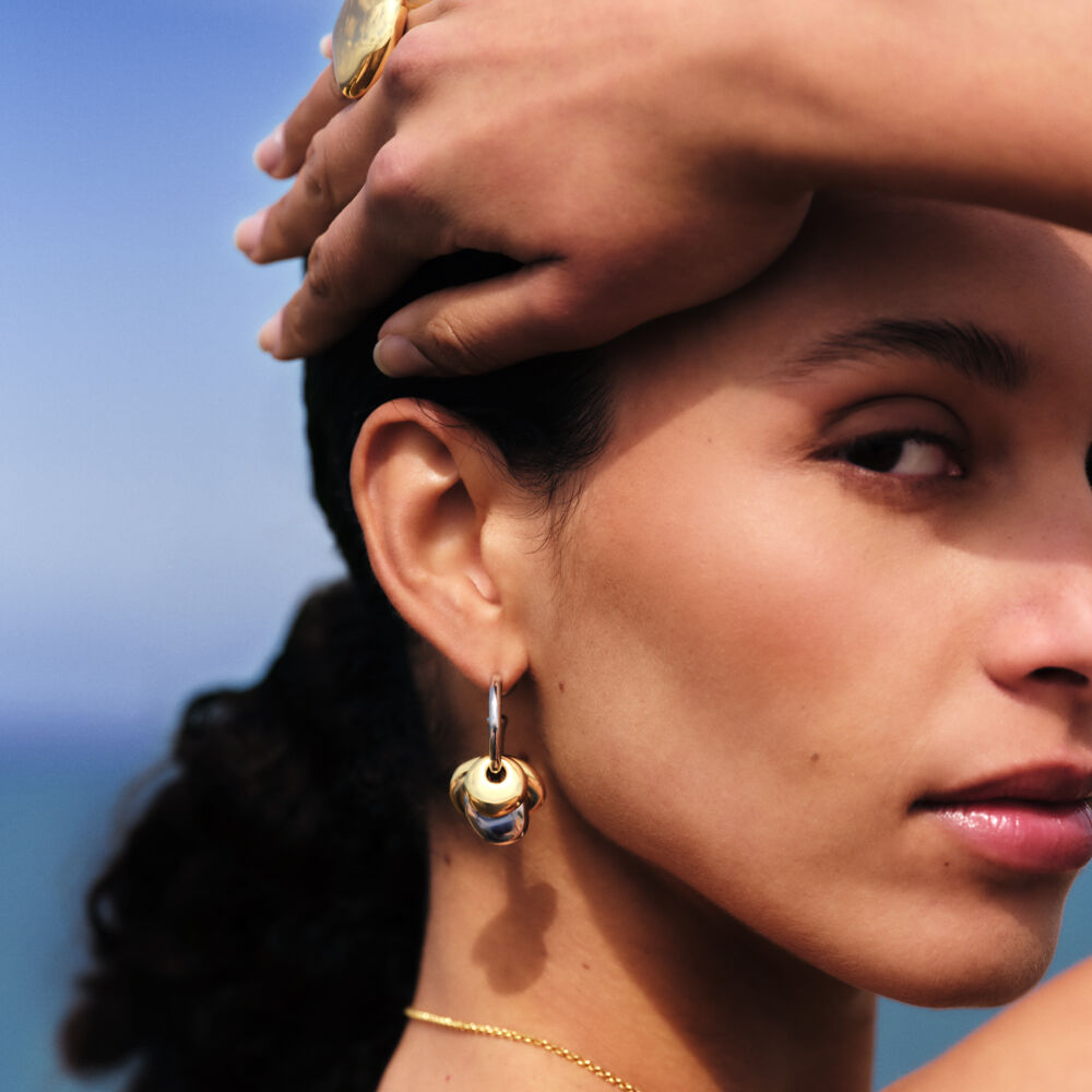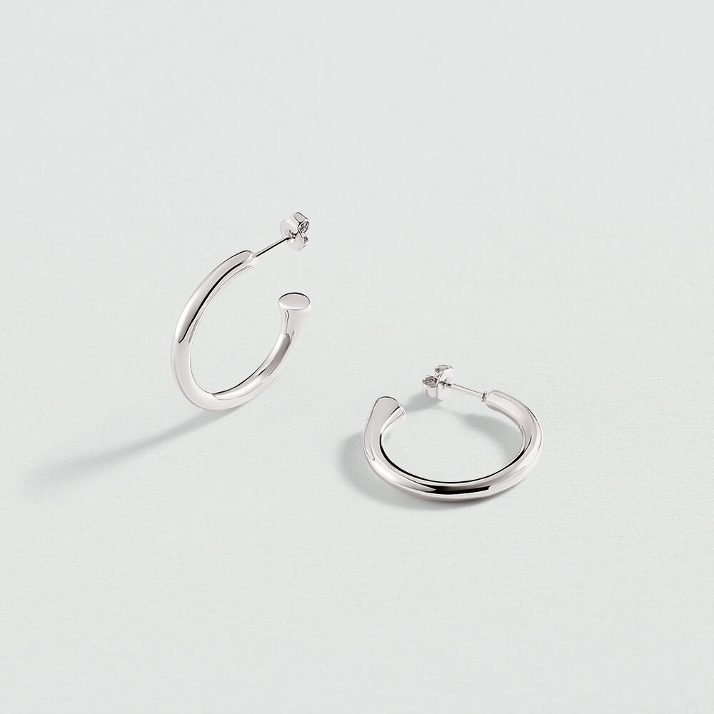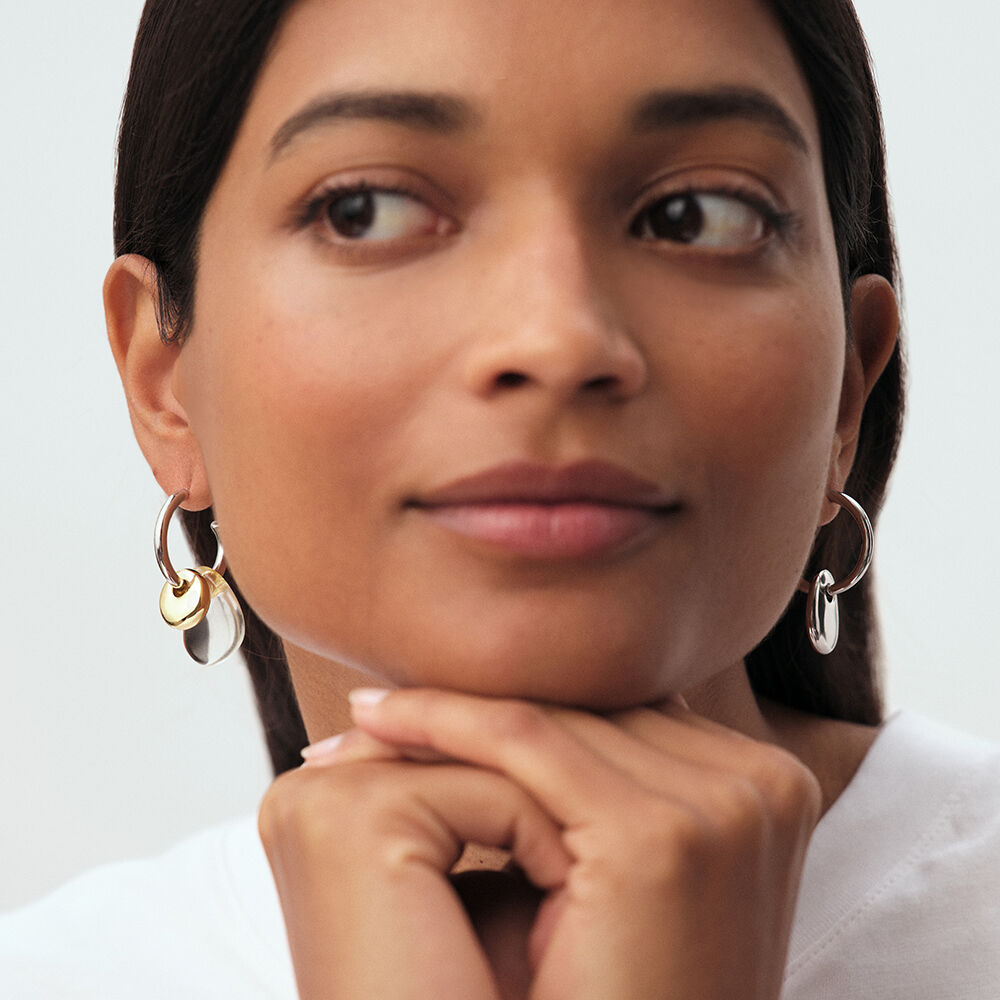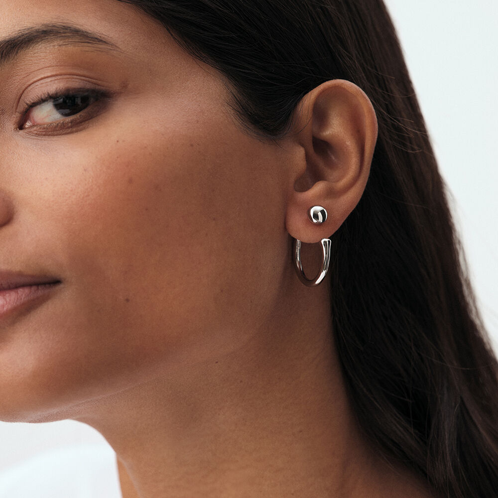 Organic rhodium-plated brass hoop earrings. Modular to suit your style: the bead can be worn at the front or the back.