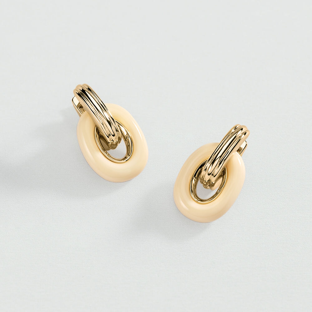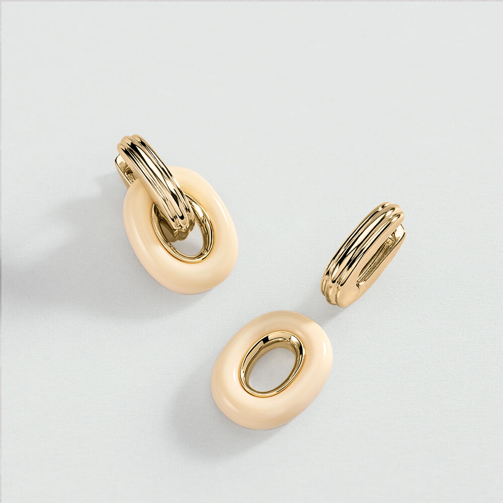 These earrings from our PALAIS ROYAL collection, designed in Paris, are made from brass gilded with 750/1000th – 18-carat gold and acetate.They are available in Leopard and Ivory colors. To suit your preferences, the ring can be removed for single or double wear.An iconic Agatha product, these earrings add a touch of color to your outfits.