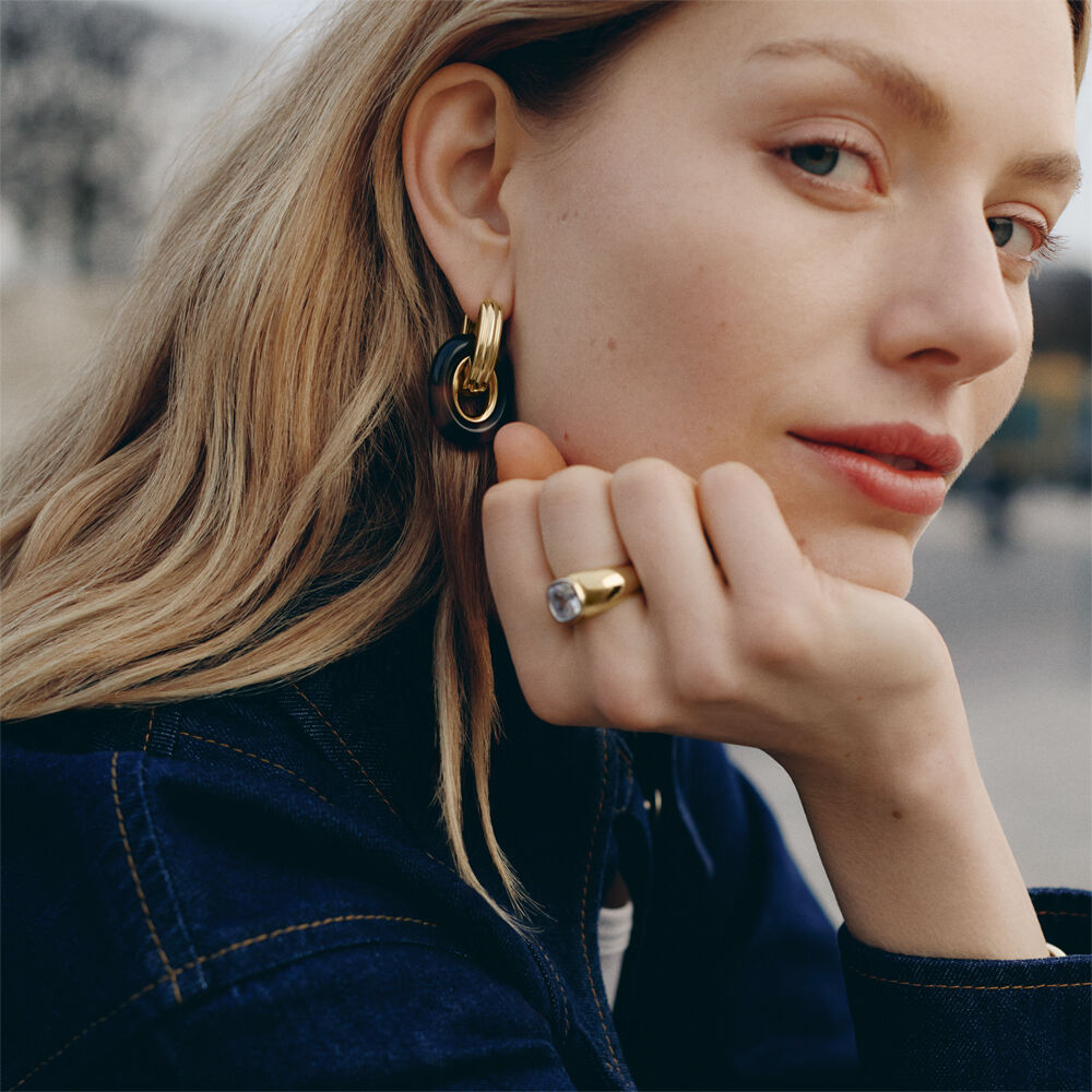 These earrings from our PALAIS ROYAL collection, designed in Paris, are made from brass gilded with 750/1000th – 18-carat gold and acetate.They are available in Leopard and Ivory colors. To suit your preferences, the ring can be removed for single or double wear.An iconic Agatha product, these earrings add a touch of color to your outfits.These hoop earrings have a diameter of 16mm.