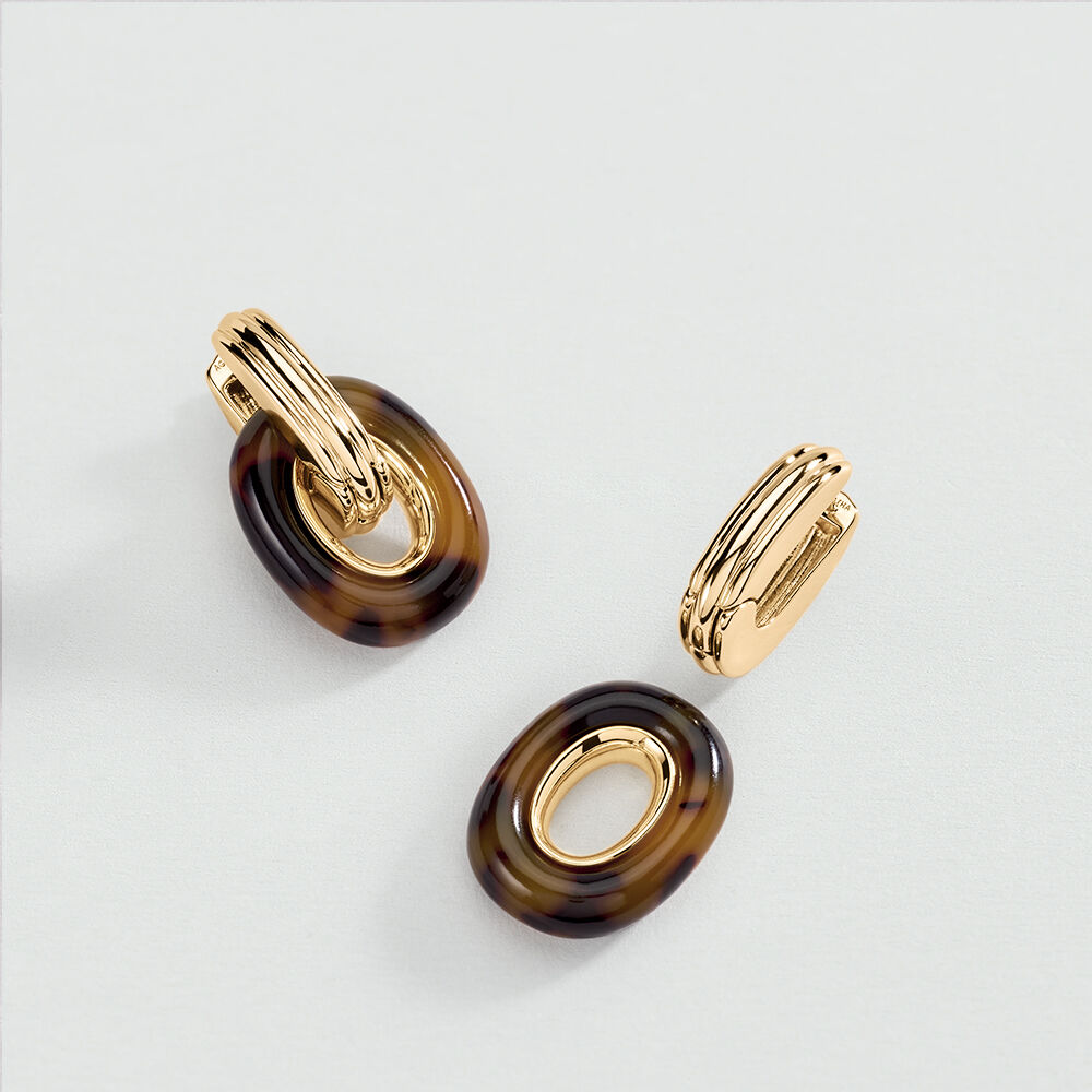 These earrings from our PALAIS ROYAL collection, designed in Paris, are made from brass gilded with 750/1000th – 18-carat gold and acetate.They are available in Leopard and Ivory colors. To suit your preferences, the ring can be removed for single or double wear.An iconic Agatha product, these earrings add a touch of color to your outfits.