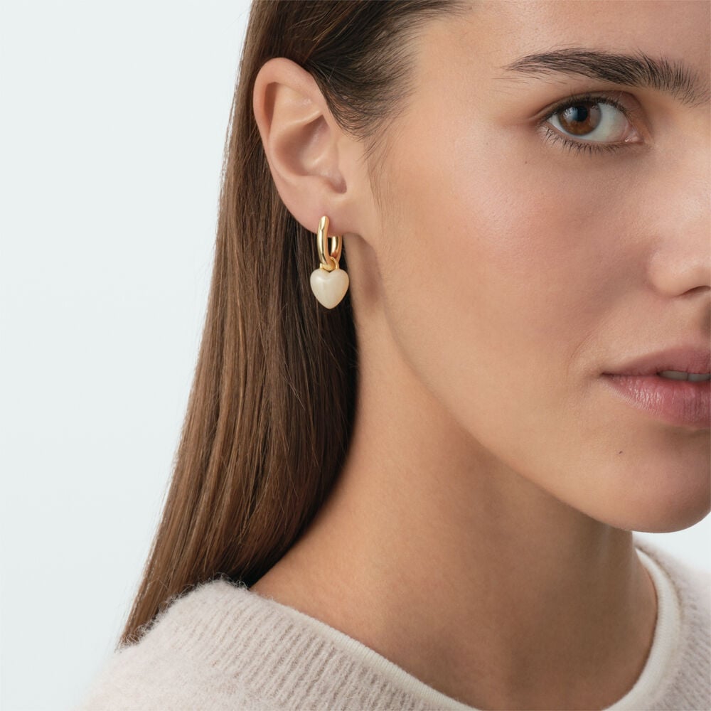 Creole earrings from our SACRE COEUR collection, designed in Paris, made from 750/1000th - 18-carat gold-plated brass and resin. They are available in ivory/gold or red/gold. The marbled appearance implies possible color variations from one model to another.