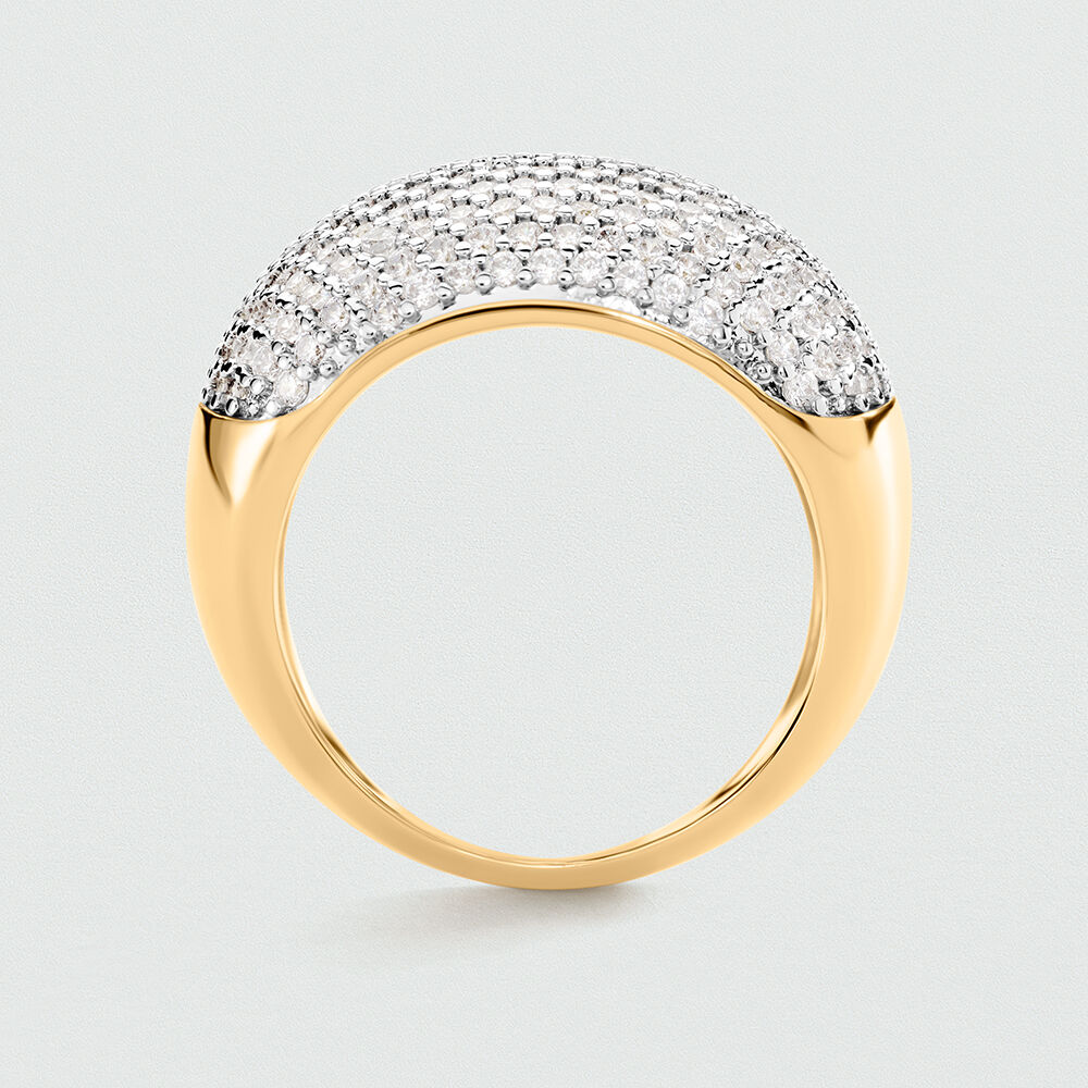 This dome ring from our DANAE collection, designed in Paris, is made from brass gilded with 750/1000 gold and adorned with zirconium oxides.This simple, refined ring is set with oxides for a more chic look. It can be paired with other pieces from our permanent DANAE collection.