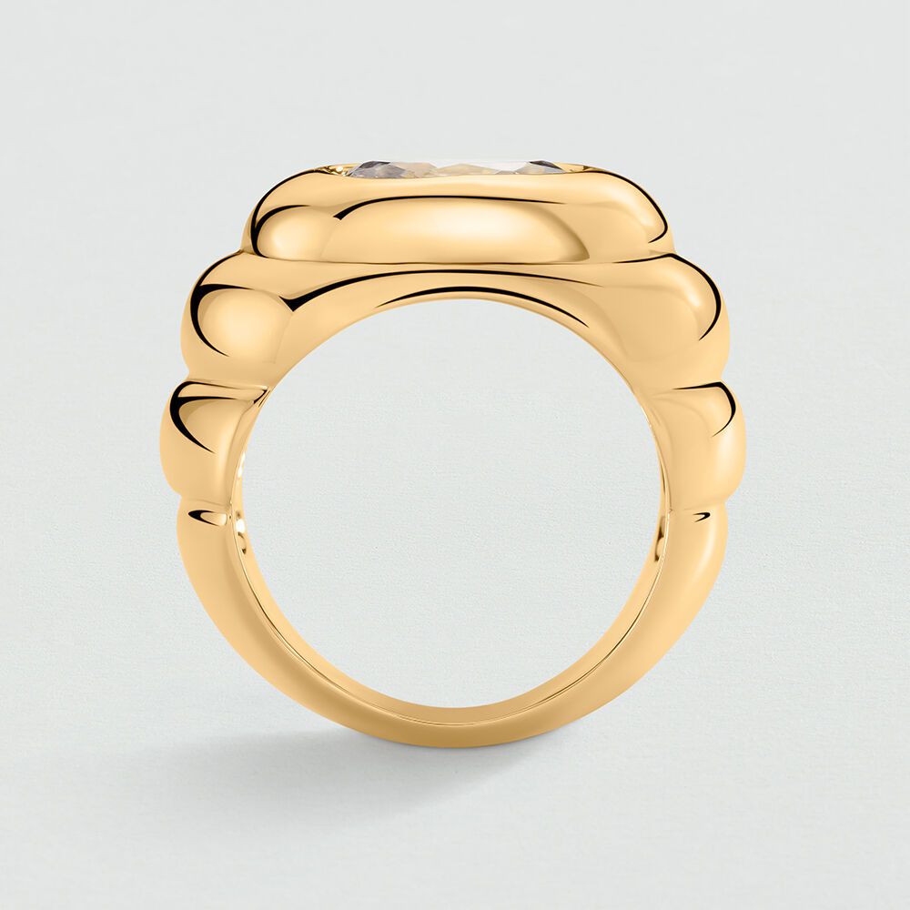 This ring from our VICTOIRE collection, designed in Paris, is crafted from brass gilded with 750/1000th - 18 carat gold and adorned with a zirconium oxide stone.Worn on the little finger, it can be stacked with other rings from our VICTOIRE collection.