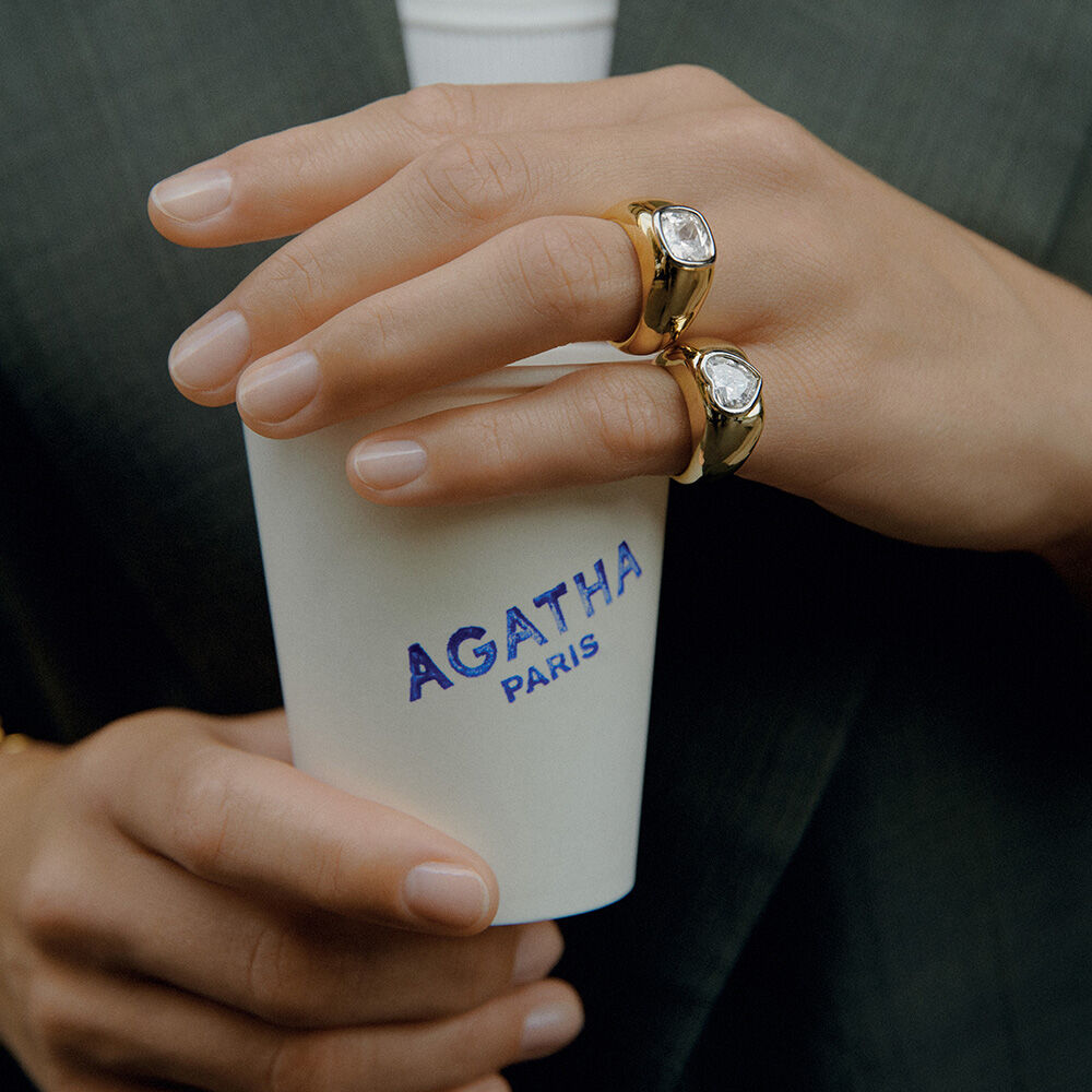 Domed ring, in golden brass, with a heart cubic zirconia.