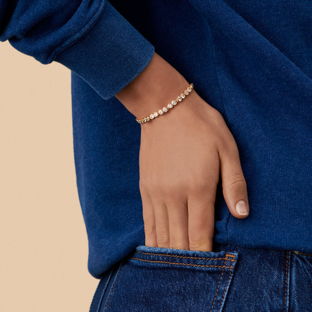 Bracelet, in golden brass, tennis cubic zirconia chain.