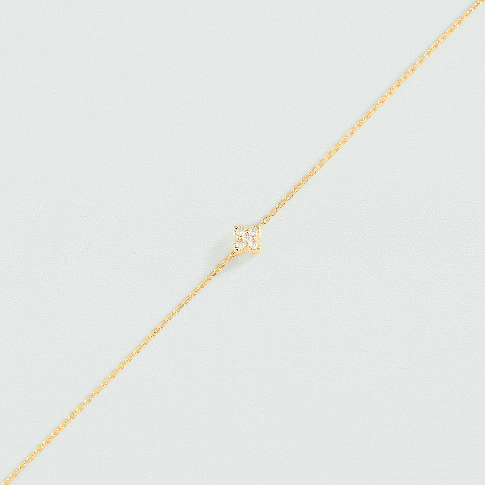 Bracelet from our BELOVED collection, designed in Paris, in 925 silver plated with 750/1000th - 18 carat gold, set with a flower paved with zirconium oxides. It is available in crystal or blue. This piece of jewelry measures 150 mm with an additional X 30 mm extension