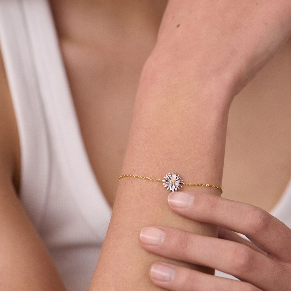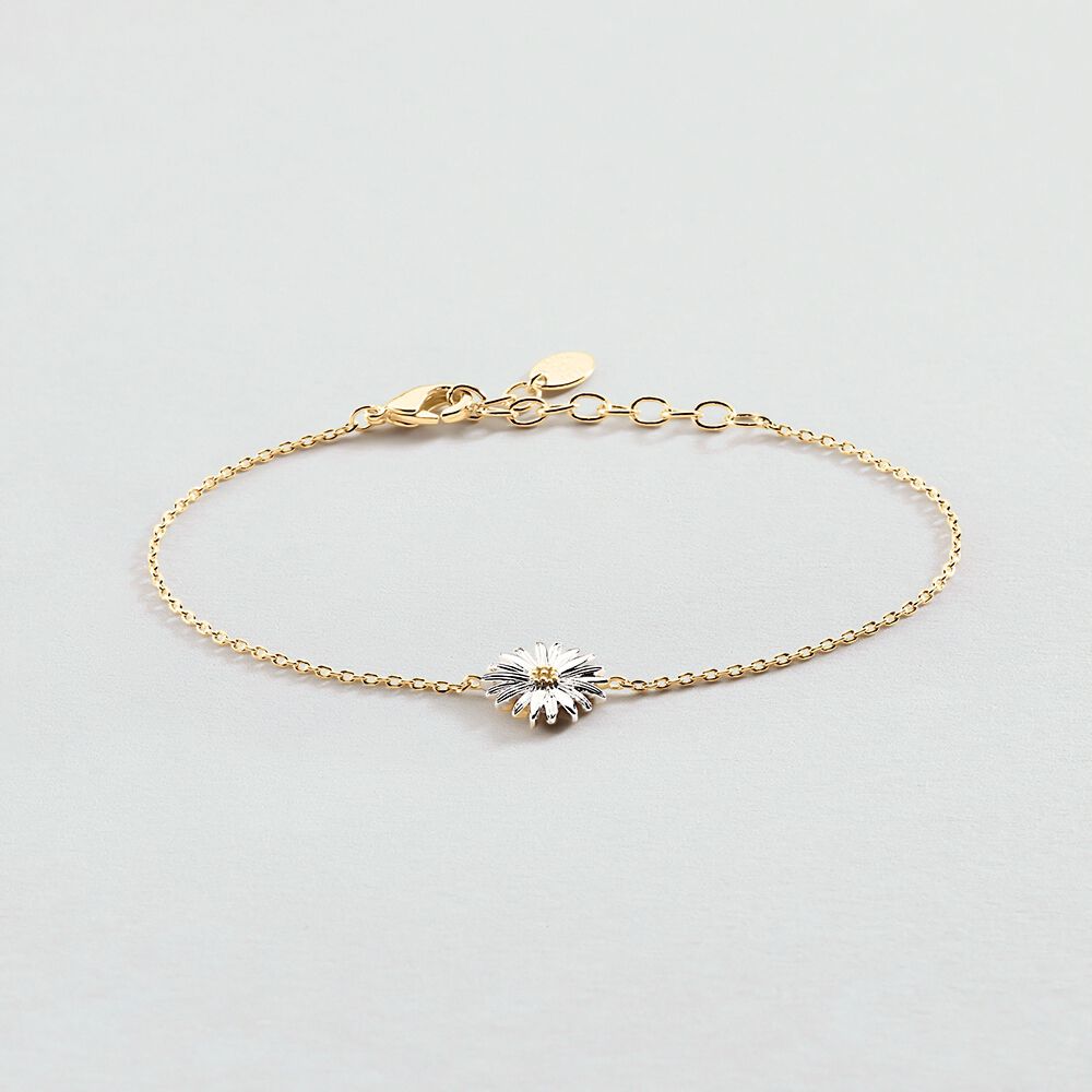 Brass bracelet gilded with 750/1000 gold and rhodium-plated. This bracelet is centered by a delicate two-tone flower that can be worn on either the silver or gold side, as you wish!. This piece of jewelry is 150mm long and comes with a 30mm extender