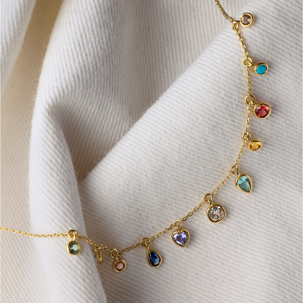 Bracelet in 750/1000 gold-plated brass set with zirconia of different shapes.