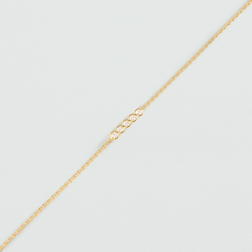 Bracelet from our ODEON collection, designed in Paris, crafted in 925 silver plated with 750/1000th - 18 carat gold and adorned with zirconium oxides or synthetic spinel in bezel settings. It is available in crystal or green. This collection with its refined design is inspired by classic jewelry codes. This piece of jewelry measures 150 mm with an additional X 30 mm extension
