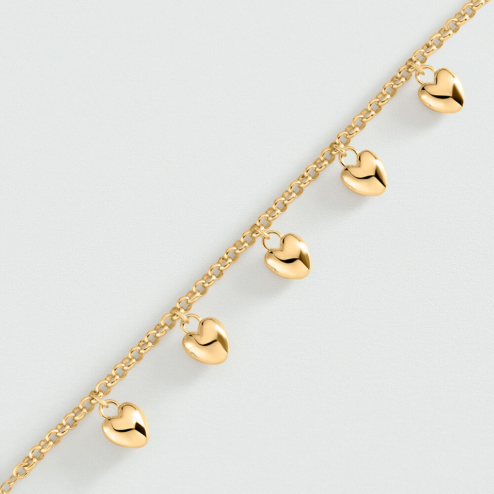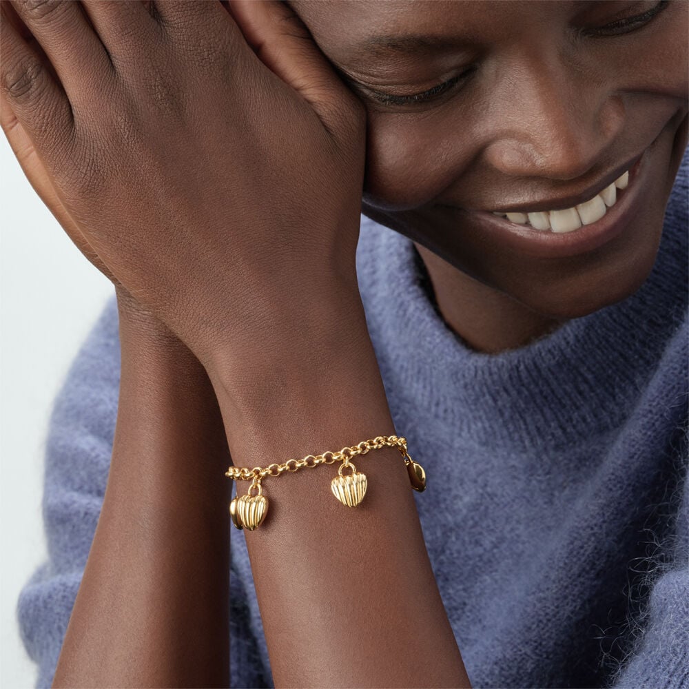 Bracelet from our SACRE COEUR collection, designed in Paris, made from brass gilded with 750/1000th - 18 carat gold. The bracelet can be worn two ways thanks to its reversible heart pendants, featuring a striated side and a smooth side. This piece of jewelry measures 175 mm with an additional X 30 mm extension