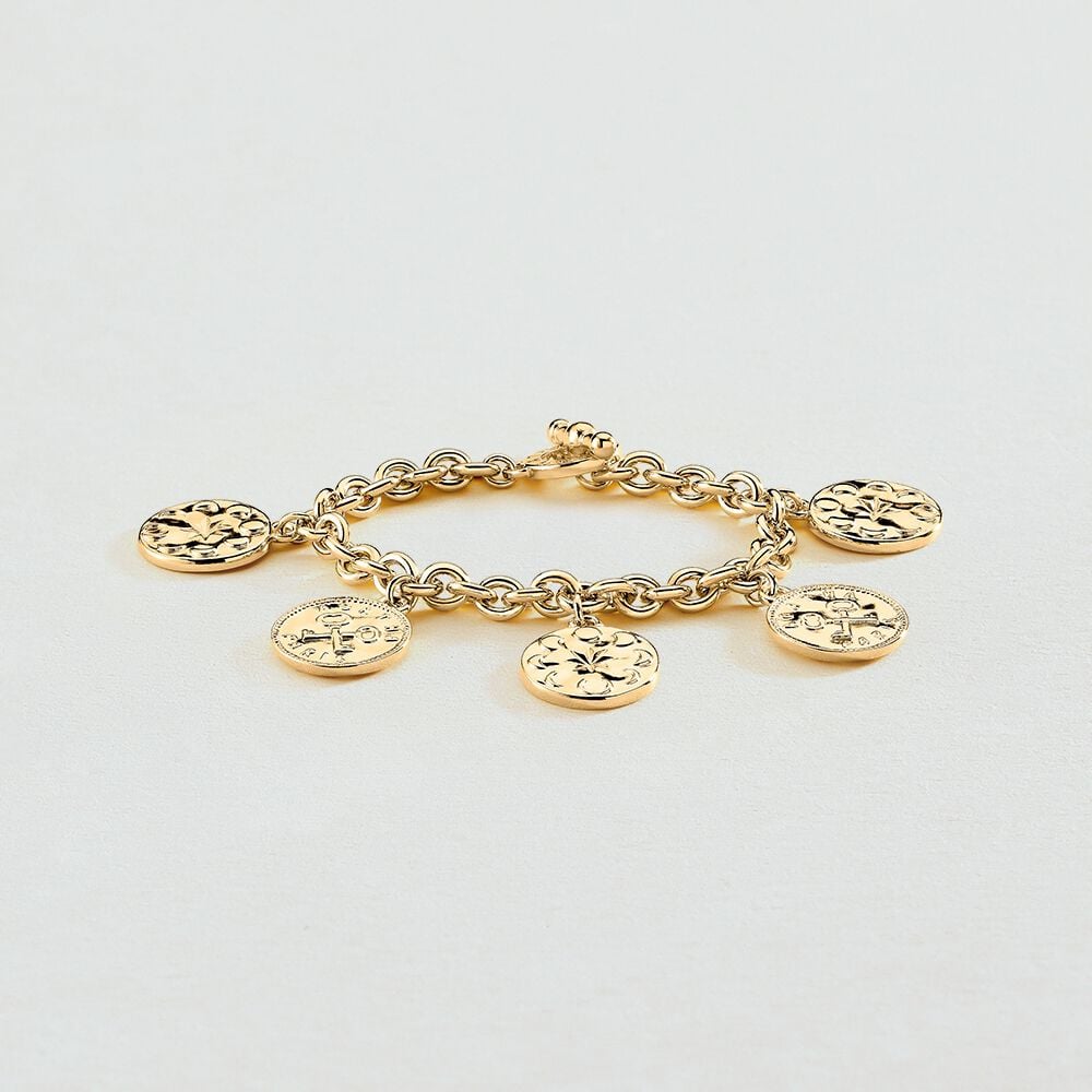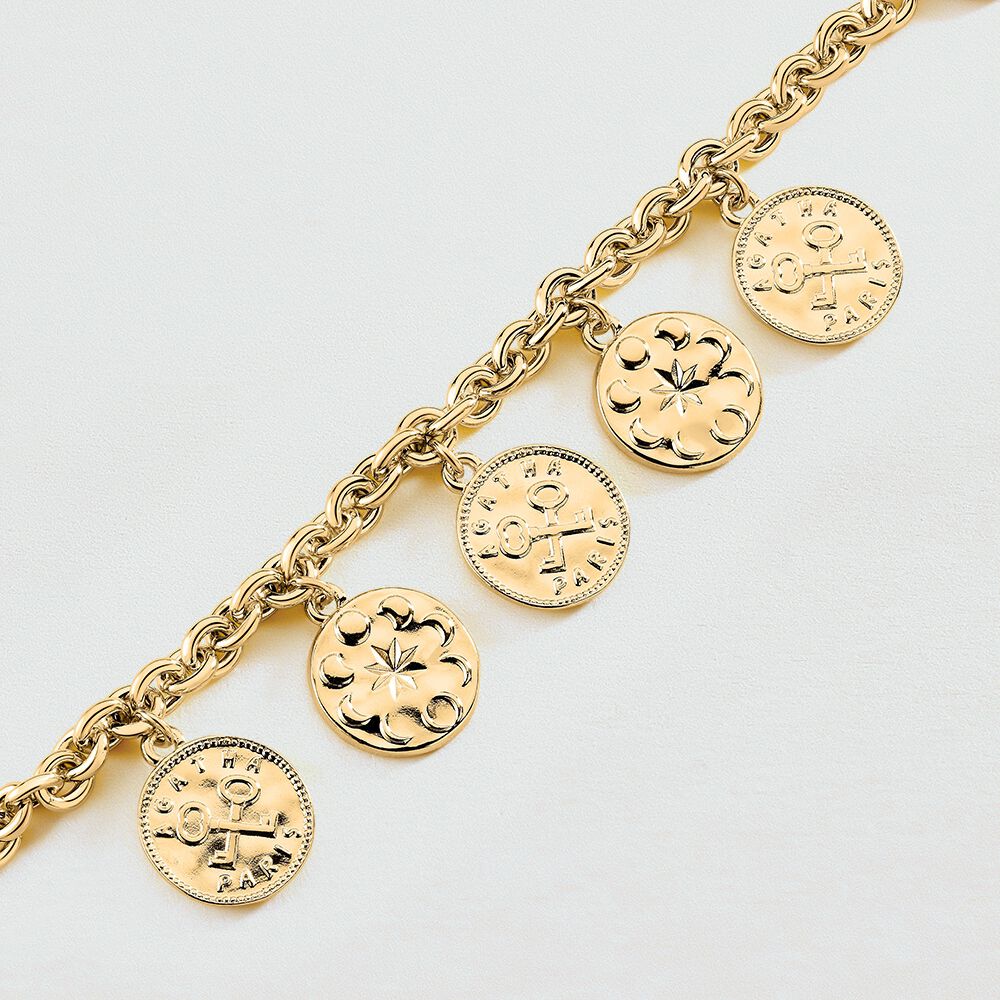 Charm bracelet in 750/1000 gold-plated tin, featuring five pendants with two crossed keys on one side and a lunar cycle on the other, with a stick clasp.Made in our Parisian workshops, each piece of the St Honoré collection is meticulously designed, hand-sculpted, gold-plated using a traditional process, and then assembled by hand to ensure optimal quality and durability. A unique piece of jewelry that carries the heritage and timeless elegance of Agatha..