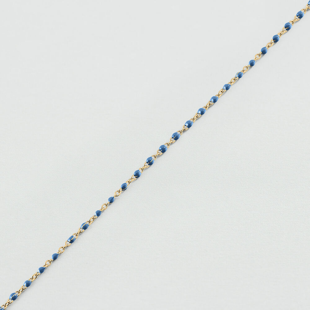 Gold-plated stainless steel bracelet with small colored enamel beads. It is available in black, green, white, coral, blue, burgundy, turquoise or silver/gold color. This piece of jewelry measures 150 mm with an additional X 30 mm extension